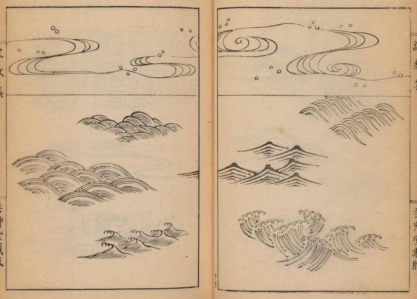 En 1903, Mori Yuzan, un artiste japonais méconnu de Kyoto, crée un ouvrage de design en trois volumes intitulé Hamonshu. Il présente divers motifs de vagues japonais traditionnels pouvant servir aux artisans locaux pour orner épées, céramiques et autres objets décoratifs et religieux.