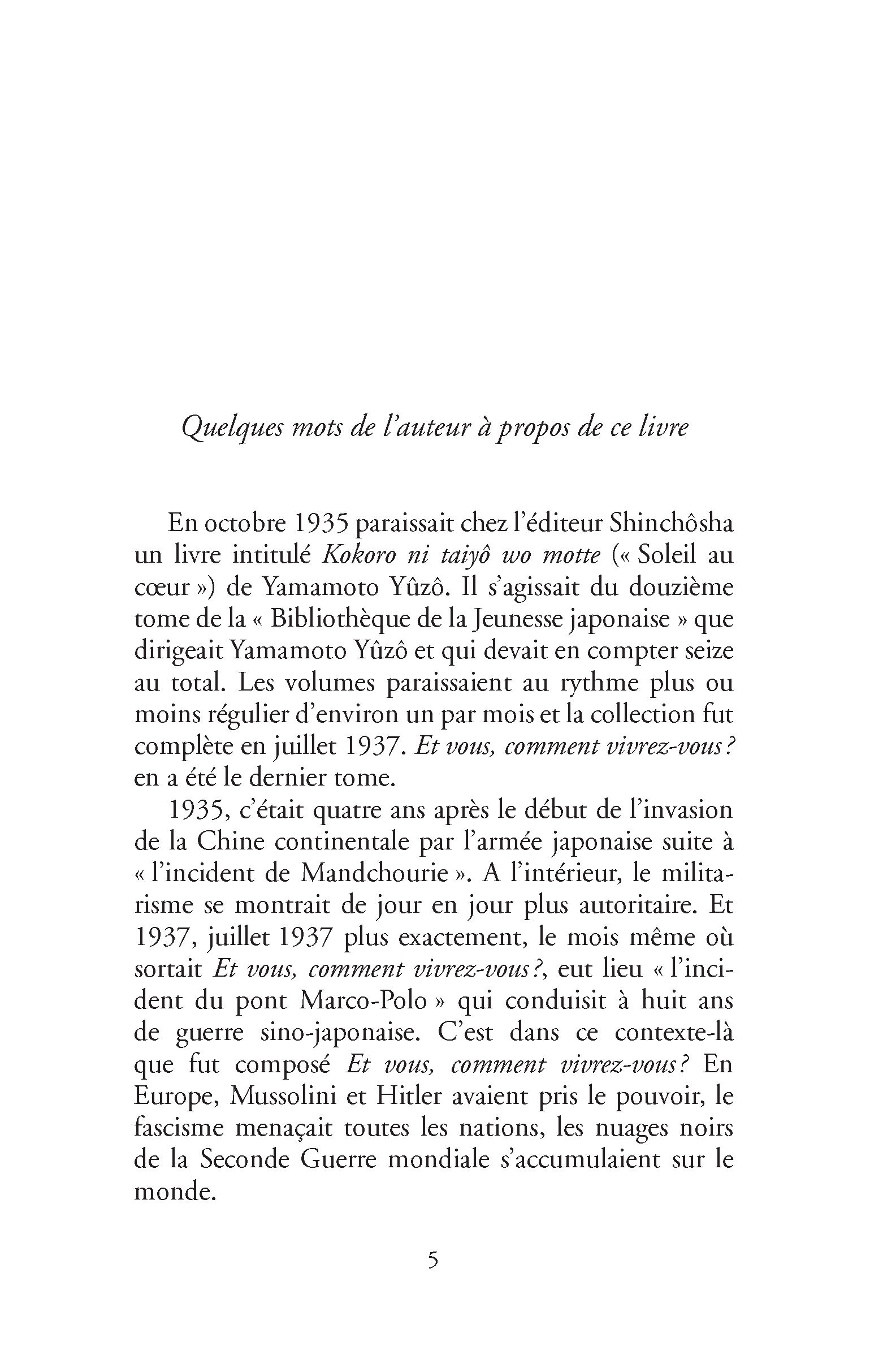 Ce livre de Genzaburo Yoshino est un roman d’apprentissage, philosophique et didactique, qui se distingue par la multitude des thèmes abordés, aussi importants qu’universels. Œuvre majeure de la littéraire populaire japonaise, Et vous, comment vivrez-vous ? est un ouvrage destiné aux enfants et aux adolescents, un « manuel à l’usage des êtres humains », une ode à l’humanité.