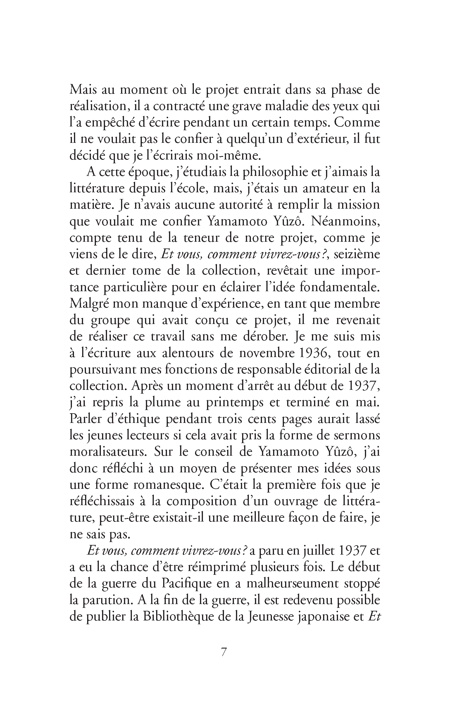 Genzaburo Yoshino (1899-1981) est un écrivain et éditeur japonais. Diplômé de l’université de Tokyo, il commence sa carrière comme bibliothécaire mais est arrêté en 1931 pour avoir aidé à organiser un rassemblement communiste. En 1935, il est engagé comme directeur d’une collection de livres didactiques pour la jeunesse, la Nihon Shosan Bunko, qui vise à transmettre aux écoliers japonais des connaissances et des idées sur la culture libre et progressiste, et dans laquelle est publié Et vous, comment vivrez-vous ?