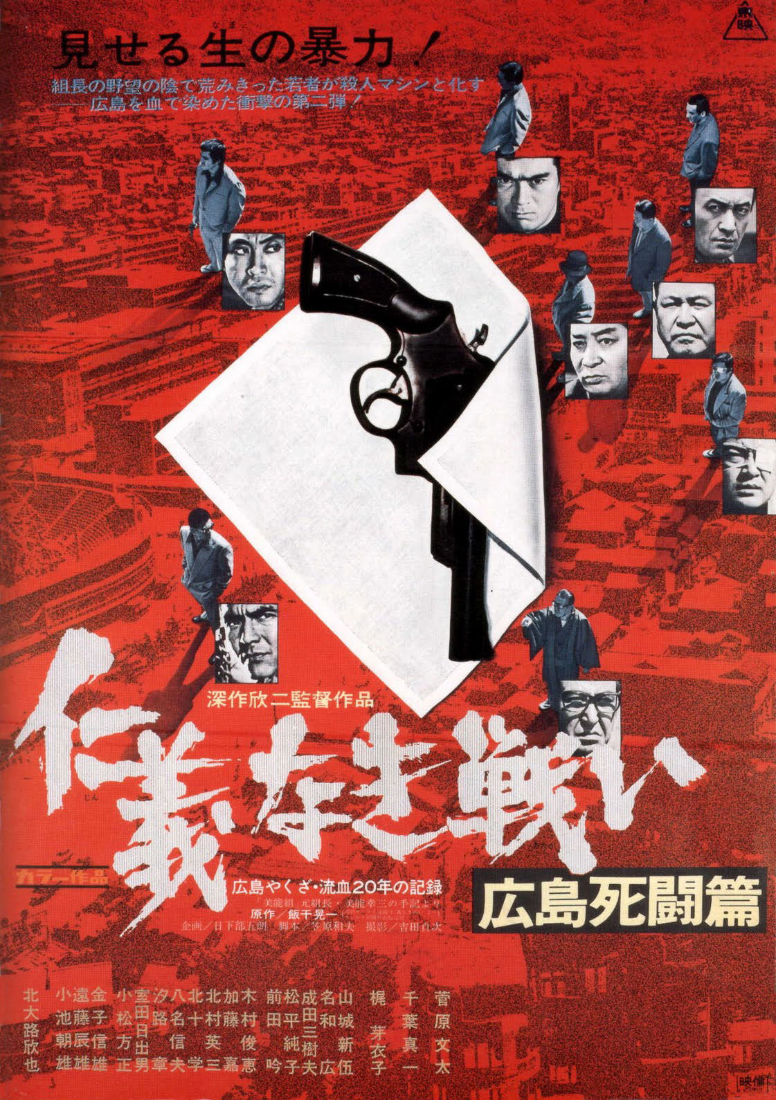 La caméra de Kinji Fukasaku épouse les corps, filme une violence crue, faisant du spectateur un personnage presque omniscient, dans cet univers suffocant. Accordant tout de même de temps à autre des instants de répit, par l’intermédiaire de plans fixes et contemplatifs, chers au cinéma nippon. Le tout, complété par une voix-off, qui relate les événements à mesure qu’ils surviennent.