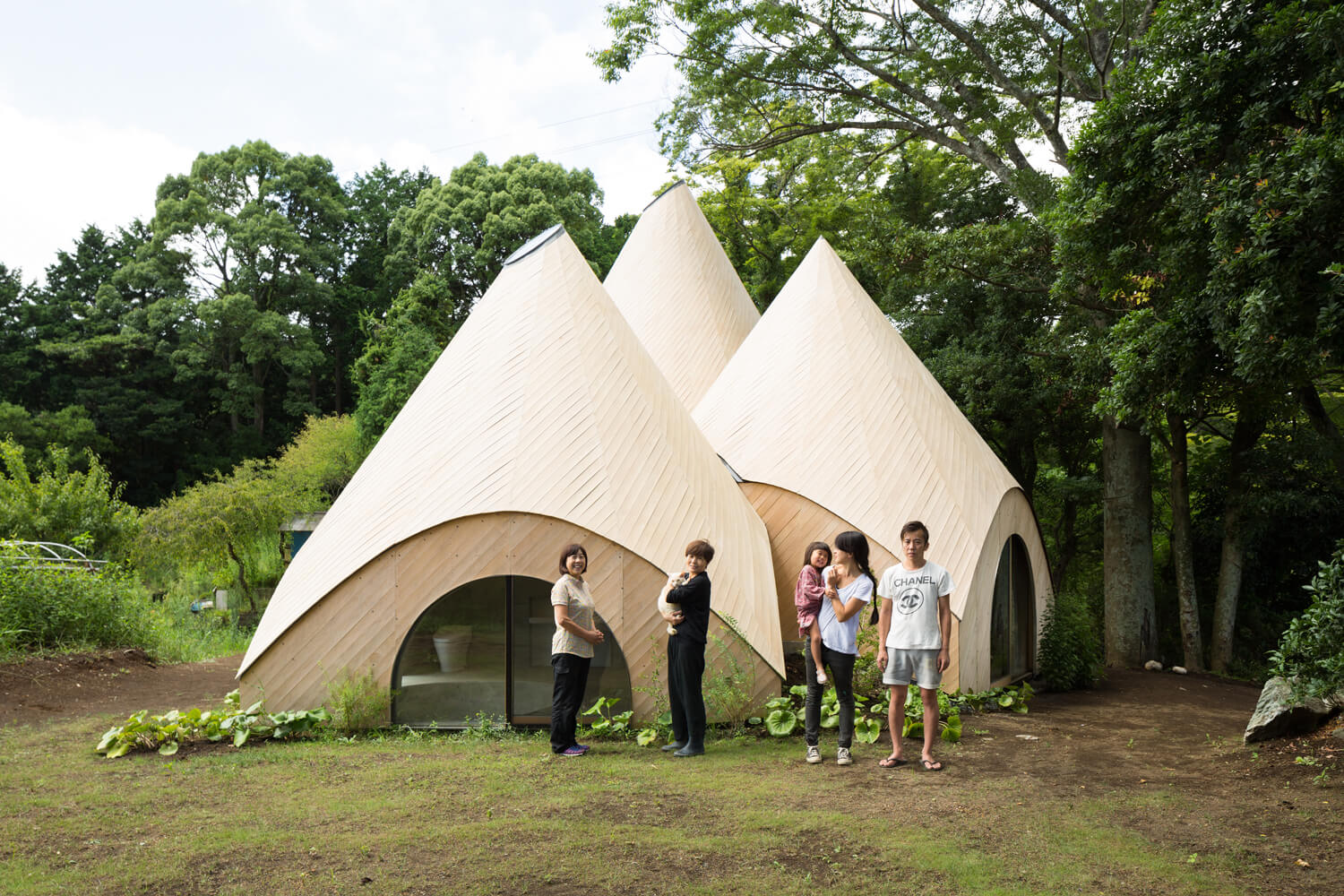Au milieu des montagnes de la préfecture de Shizuoka, à quelques encablures du mont Fuji, se dressent cinq cônes de bois aux airs de tipis. Ces structures, que l’on pourrait croire tout droit sorties de l’imagination de Hayao Miyazaki, sont en réalité l’oeuvre de l’architecte japonais Issei Suma. A l’origine, deux femmes lui avaient demandé d’imaginer un espace qu’elles pourraient investir, tant pour y vivre que pour servir leur communauté en recréant du lien social entre les personnes isolées.