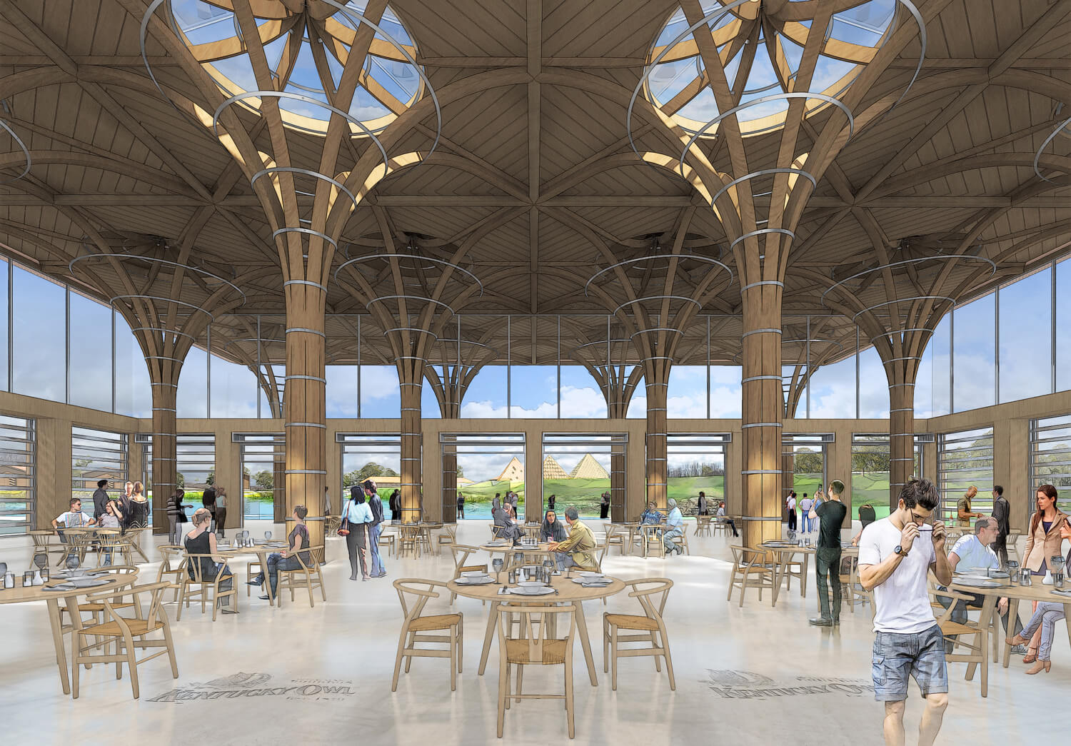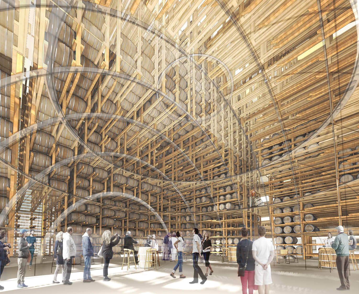 Pour attirer une nouvelle clientèle et se différencier de ses concurrents, le groupe Stoli (propriétaire de la marque Kentucky Owl Bourbon) a chargé Shigeru Ban de créer les plans d’un lieu unique, dont tous les éléments ont un lien avec le bourbon et son histoire. Avec une contrainte : que l’endroit, déployé sur un terrain de 170 hectares, soit à la fois un haut lieu d’industrie (avec une distillerie et une usine destinée à la mise en bouteille) et un centre touristique d’envergure.