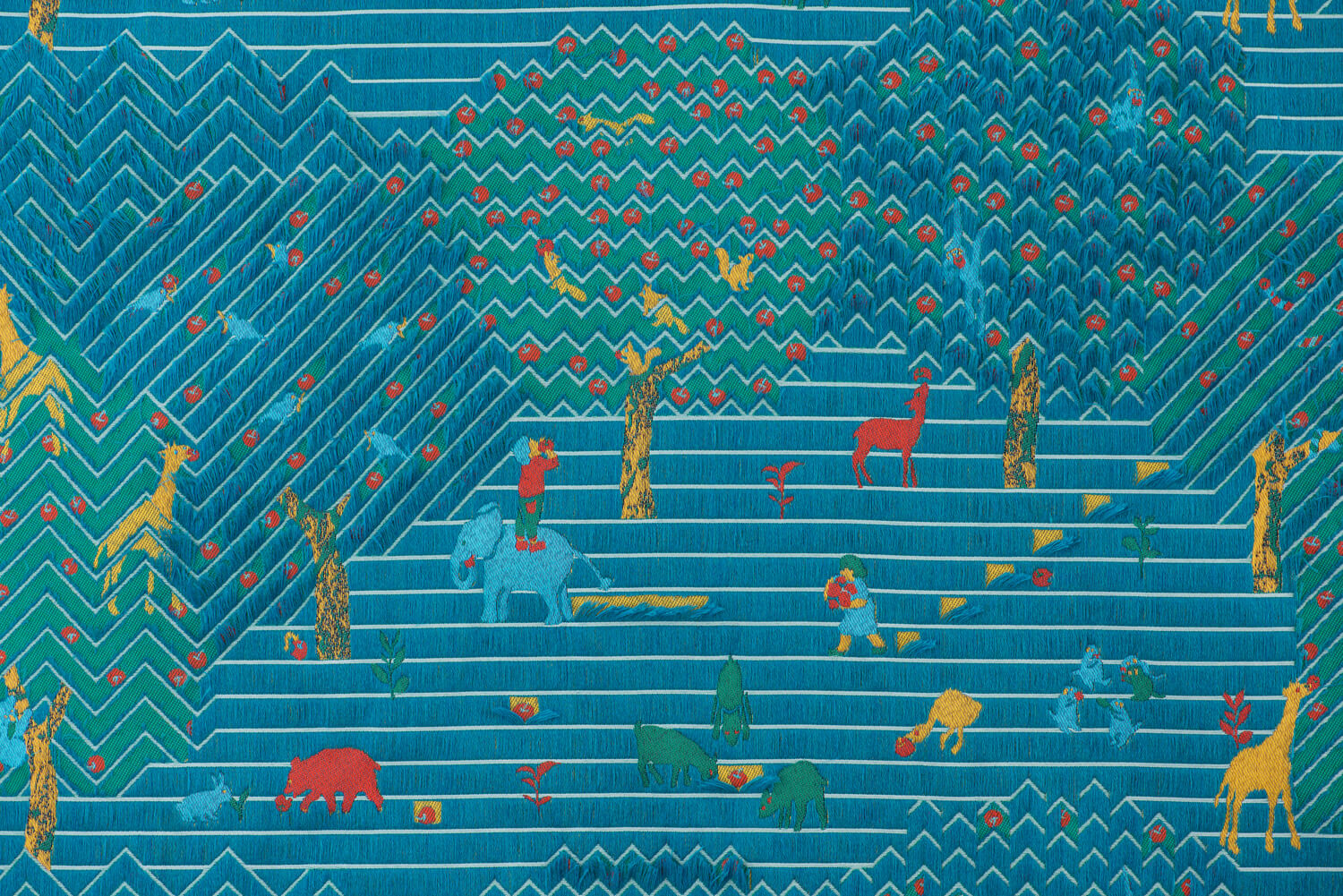 La créatrice spécialisée dans le design textile a élaboré son propre mécanisme de tissage dont résultent des motifs uniques.