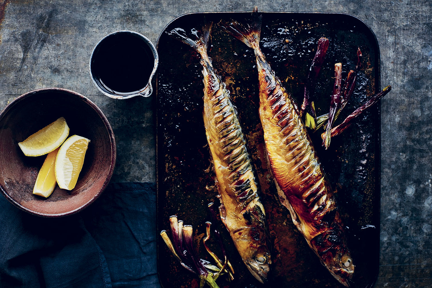 Quand cette face a pris une belle couleur, vérifiez la cuisson en regardant l’intérieur du poisson. Si la chair la plus proche de l’arête centrale est blanche ou grise, le maquereau est cuit. Au moment de servir, appliquez-y une dernière couche de sauce soja sucrée, saupoudrez-le de poivre sansho ou de shichimi et décorez-le de quartiers de citron.
