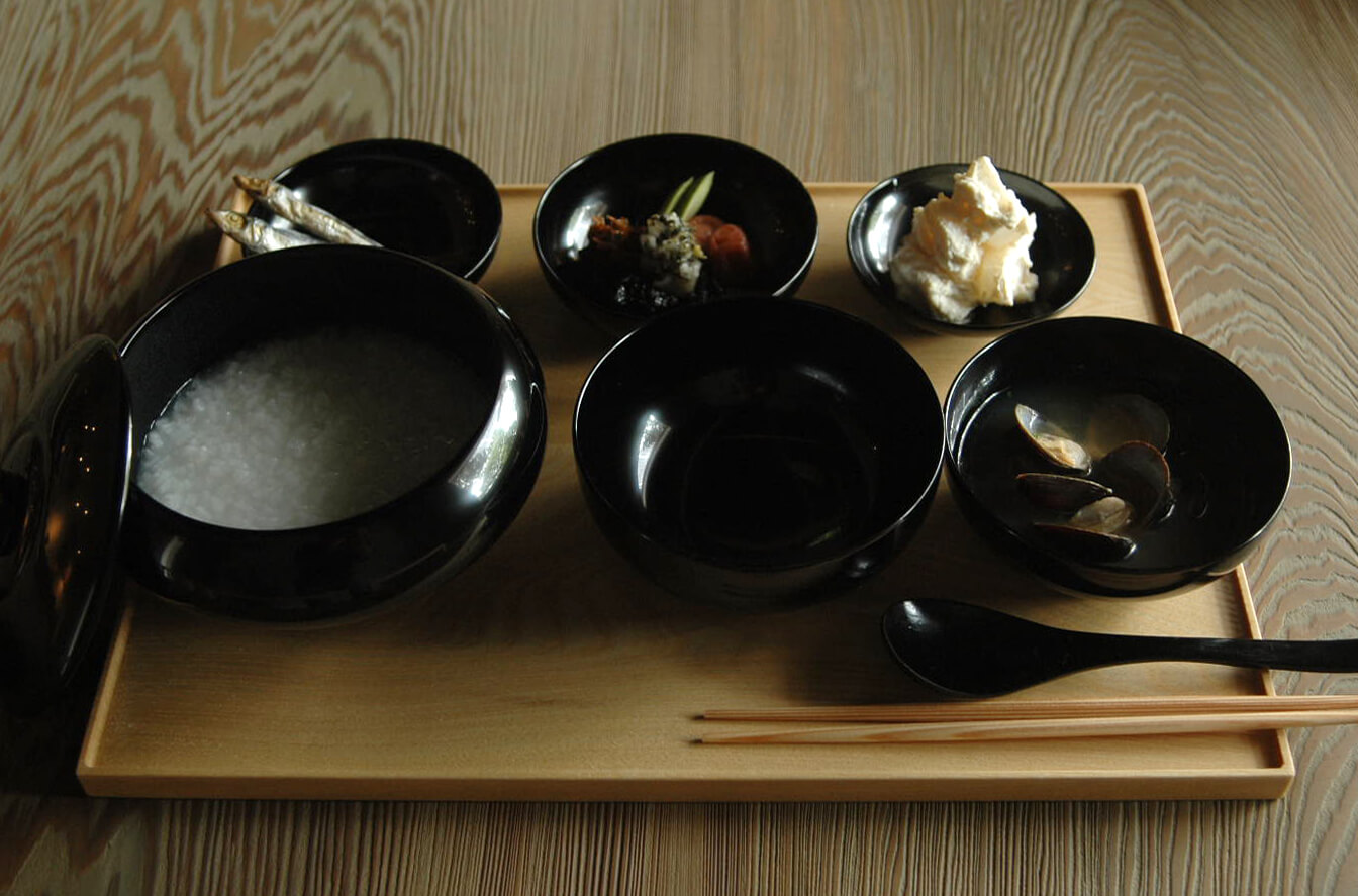 Un service de petit-déjeuner (3200 yens, 24 euros) et un déjeuner (5000-12 000 yens, 37-90 euros) sont proposés, ainsi qu’un service de thé. Y dîner en revanche s’avère plus délicat, cela n’est possible que sur invitation personnelle de l’établissement, avec une condition supplémentaire : y être déjà venu pour déjeuner.