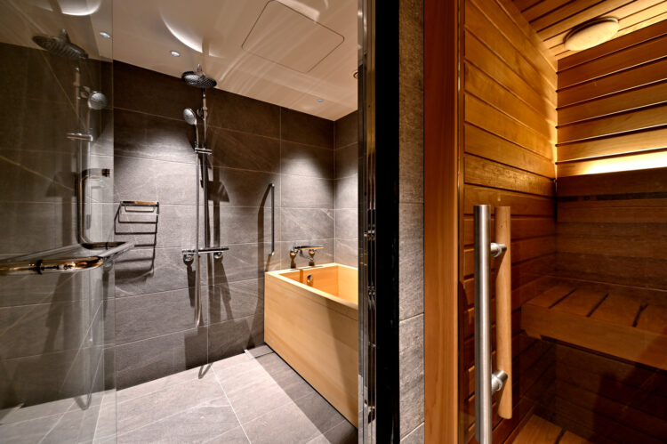 Celebrity Suite à l’étage exécutif, équipée d’un bain en “hinoki” et d’un sauna privé.
