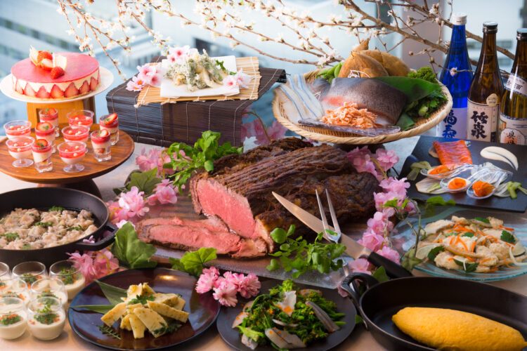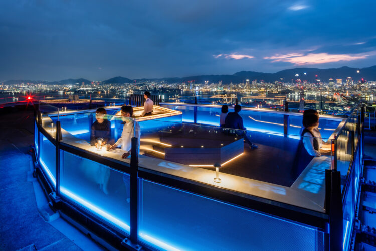 À gauche : Terrasse panoramique “Sorafune Kobe” offrant une vue nocturne à 360 degrés. / À droite : Sky Grill Buffet GOCOCU au 30e étage, mettant à l’honneur les spécialités de Hyōgo.
