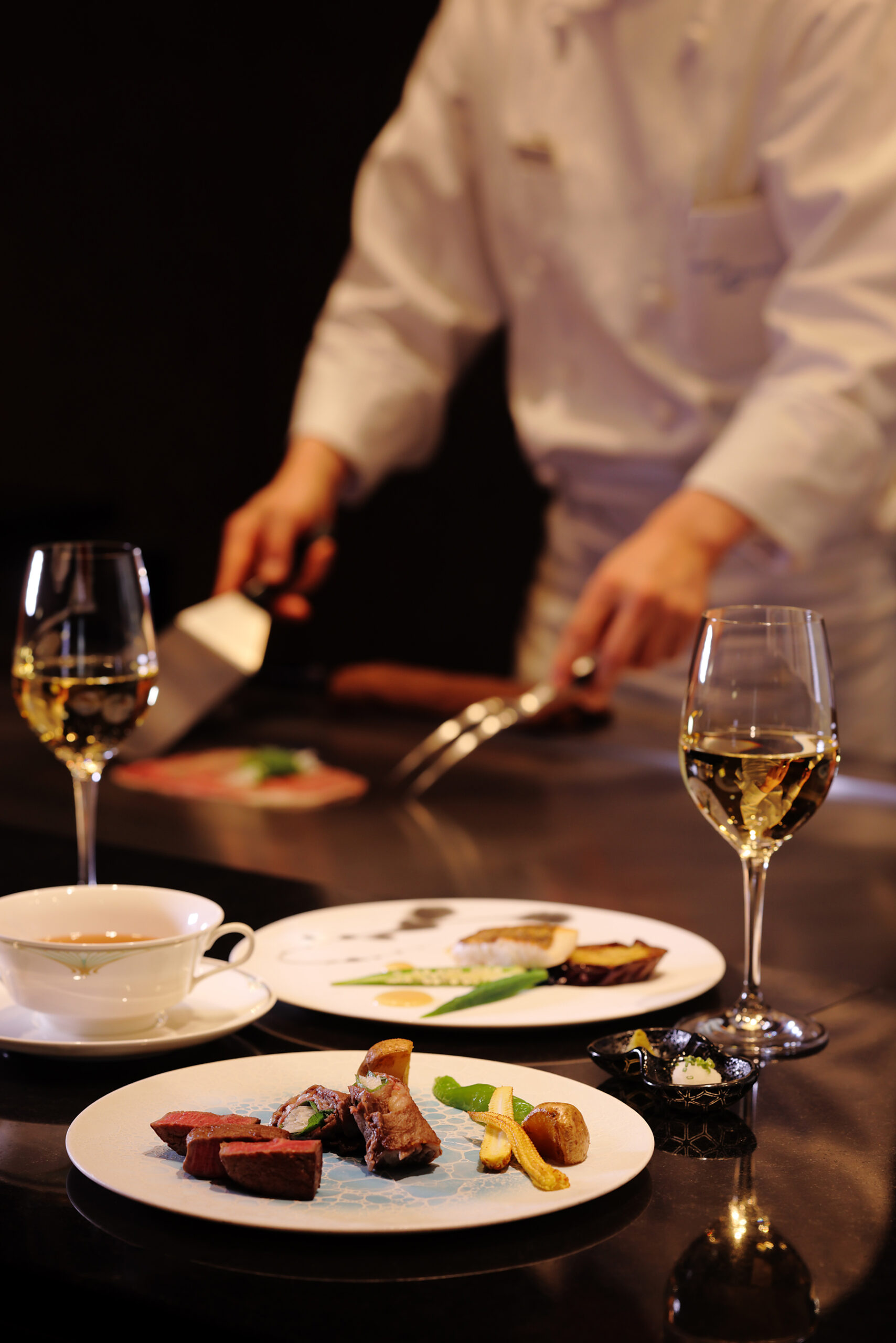 Bœuf de Kobe grillé sous vos yeux, accompagné d’une vue dégagée depuis le 35e étage.