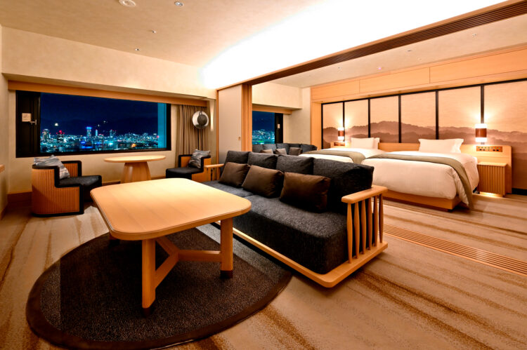 Depuis le lobby situé au dernier étage, la vue embrasse à la fois le mont Rokko et la mer. Service attentif dans le club lounge et atmosphère proche d’une résidence privée composent un séjour façonné par l’histoire cosmopolite du port.