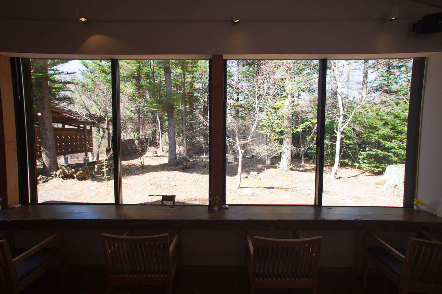 The owner, Takeru Ushida, learned the ropes of the business on his own at various coffeeshops in Tokyo, and after years of research, he transferred from his home in Yokohama some ten years ago to start a small café in Karuizawa. His coffee, which is painstakingly brewed cup by cup through a drip process, is characterised by a robust, full-flavoured taste. The best places to sit are the counter seats, which face onto a garden through a large window installed on the west side. As those seats, however, force the customers to face away from the owner, they allow them to immerse themselves in their own world. Bird feeders have been placed in the garden, attracting such species as tits, nuthatches and great spotted woodpeckers, among many others. One can easily forget the passage of time just by watching the birds flitting back and forth and the squirrels running around before one’s very eyes.