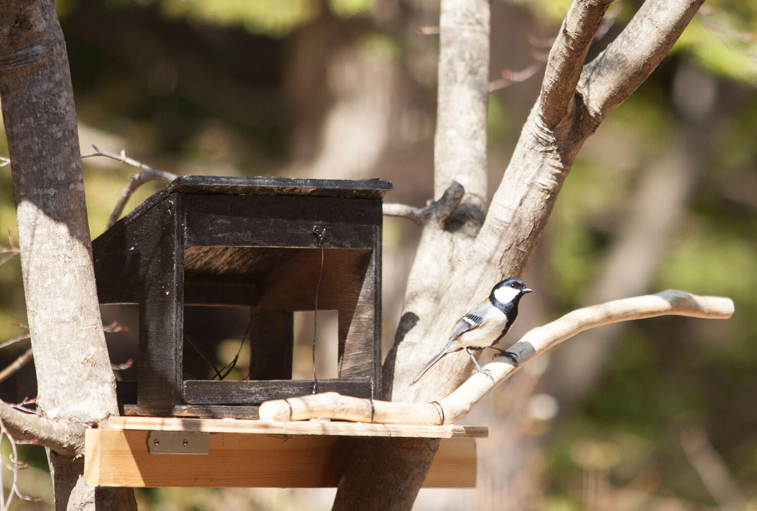 Ushida says, ‘I wanted to create the type of café where adults could feel free to drop in on alone. Some of my customers even take naps at the counter seats. I’m helping them relax’. Whereas he used to only be able to identify sparrows and crows some ten years back, he now knows enough about birds to be somewhat of a knowledgeable expert on them. When you are at his coffeeshop, you start to want to shut out daily types of information, such as words, music and images, and instead listen to the voices of nature. This café, which offers a view of the ever-changing scenery—from the verdant greens of spring to the colours of autumn, not to mention the white snow of winter—along with the frolicking of the birds, always extends a warm welcome to visitors.