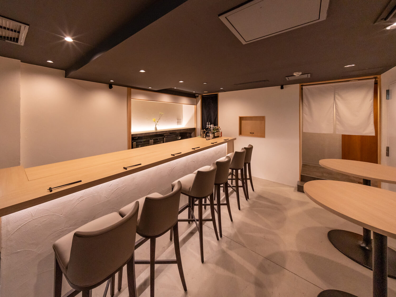 In the centre of the bar, on a raised platform, stands a tea pavilion with a metal structure and tatami mats. When night falls, it becomes a stage for concerts given by traditional Japanese artists and featuring instruments such as shamisen or koto.