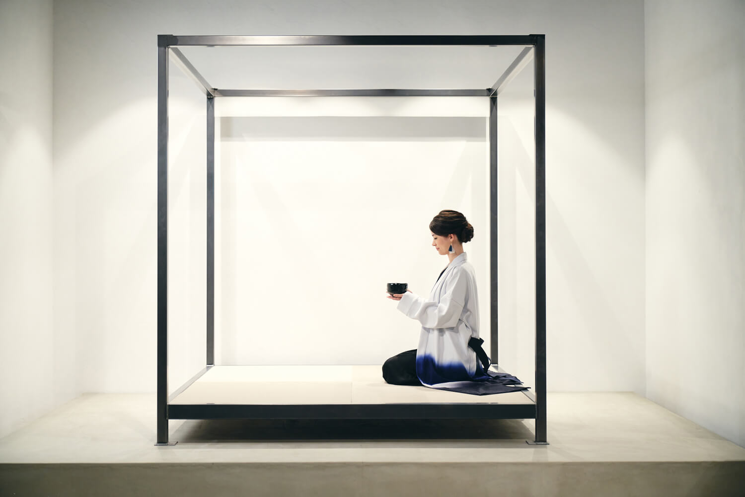 Each room has a tokonoma, a small alcove in which a painting hangs, reminiscent of the kakemono found in tea houses. The whole space is illuminated by soft, subdued lighting.
