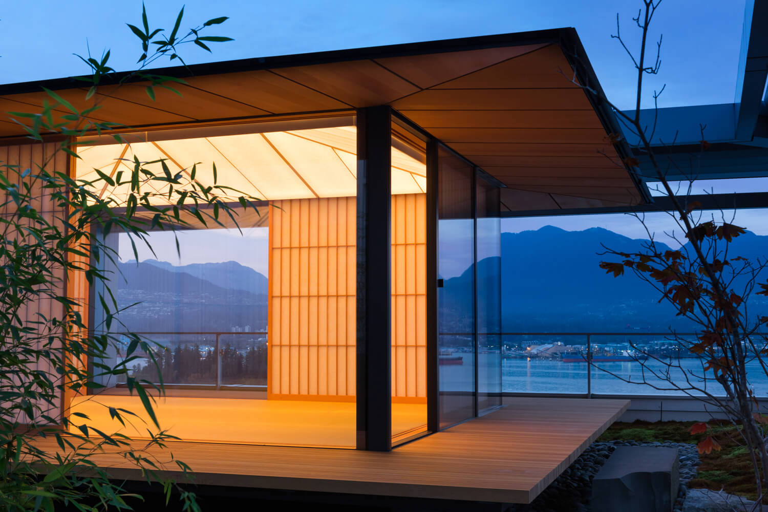 Vancouver Tea Room, an architectural creation by Kengo Kuma, is, as the name suggests, a highly traditional teahouse, with a tatami floor and wooden structure. Where the architect broke with Japanese codes, however, was by installing it on the terrace of an apartment in Canada in 2016, on the 19th floor of a building in the heart of a lively district of Vancouver.