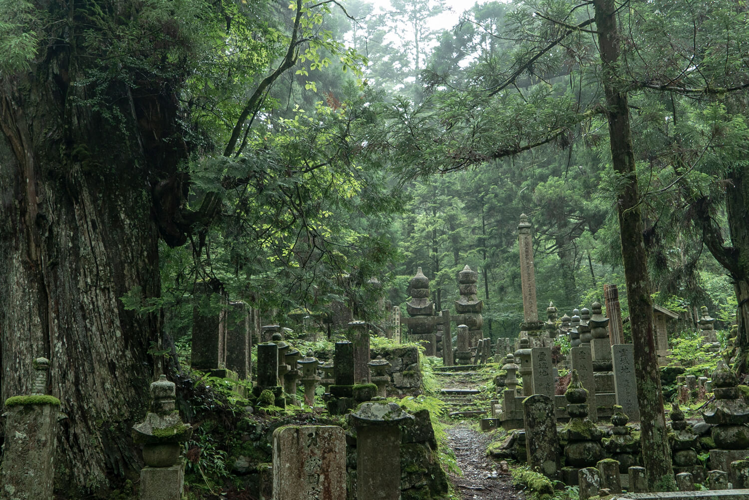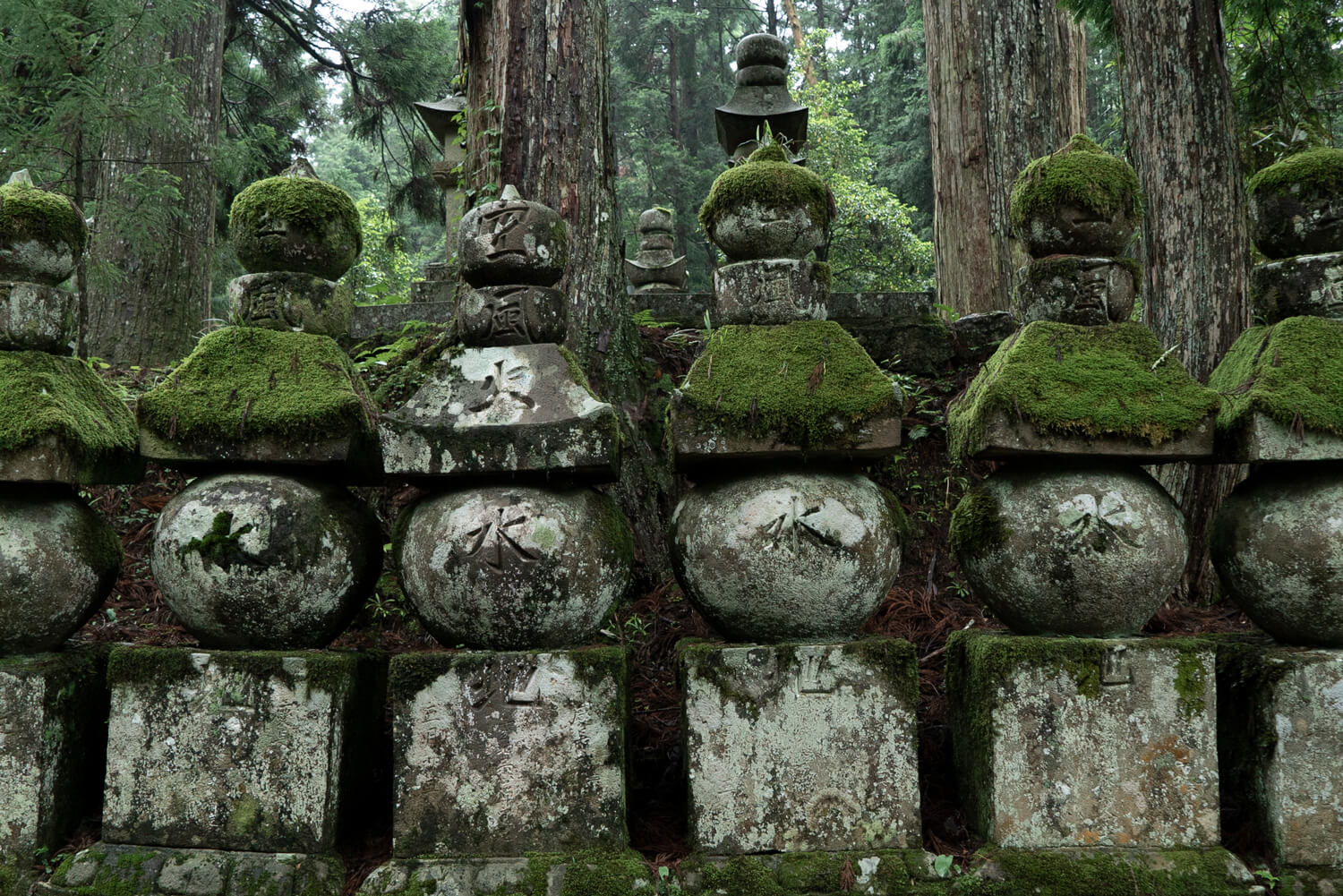 After its founding, roads to reach Koyasan (completely inexistent until then) started appearing, converging all of them in a total of seven primary entrances. The main one, called Choishi-michi, is marked by a total of 180 choishi or stone signposts, each symbolizing the five elements that make up the universe — space, wind, fire, water, and earth. The trail, still walkable today, is proof of all the beauty that the mountainous prefecture of Wakayama has to offer. Whether this beauty was enough of an incentive for the people who would transport the materials needed for the construction of the complex up through its steep slopes, we cannot know. But if not on the way, they might have found the reward at its finishing line, in the form of one of the most beautiful sunsets in Japan. Chasing the magic of the golden hour we head next to Okunoin, the biggest cemetery in Japan. Walking aimlessly at dusk, when the last rays of the day are filtered through the centenary cedars and more than 200,000 tombstones, you cannot help but enter in some sort of meditative state. You would not be alone on this; in the mausoleum found at the back of the cemetery, Kobo Daishi is believed to be —still alive— in a state of eternal meditation.