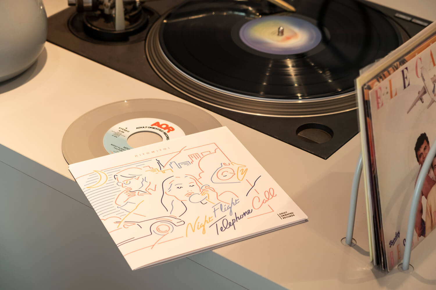 The person who pulled this together is Takumi Yuge, the boutique’s owner. Yuge, a fashion designer who has his own brand, ‘Yuge’, has ventured into music not only as a DJ, but also by designing jacket art for albums of music by Asako Toki, Hitomitoi, and others. The name of the boutique was inspired by the musical genre known as adult oriented rock (AOR), but ultimately is not defined by genre—Yuge speaks of his willingness to handle any music that appeals to adult tastes.