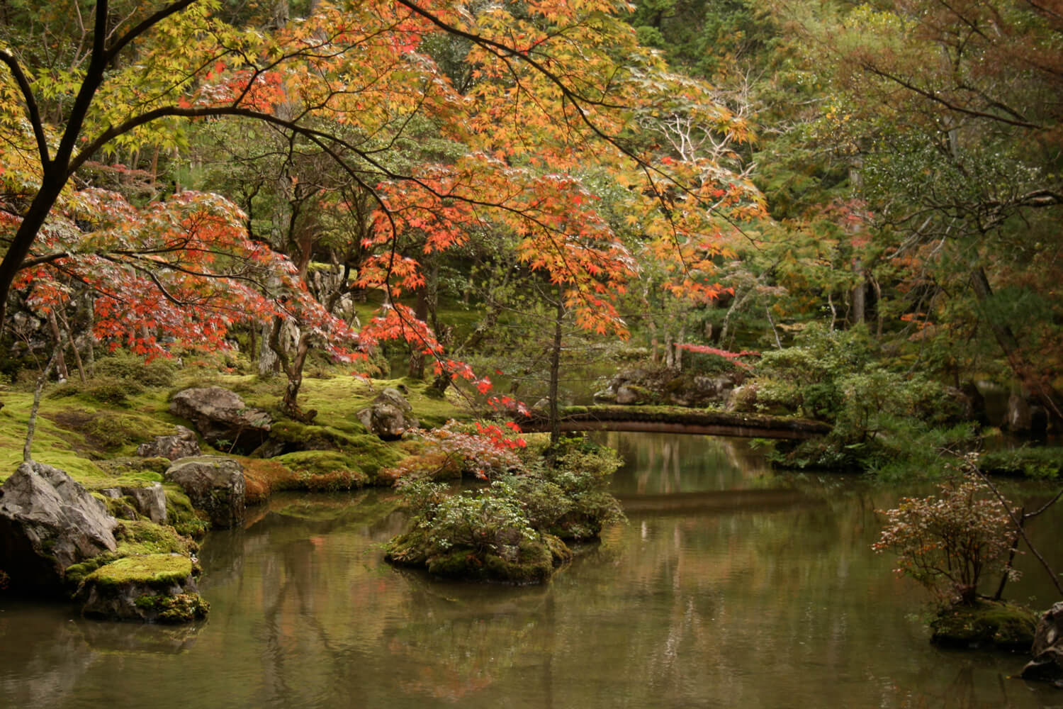 Saiho-ji Temple, built in the 8th century, is located in western Kyoto. Also nicknamed Kokedera, literally temple of moss, it contains more than 120 species of the plant appearing in various colours over the seasons. The greenery is set against the gentle sound of the water burbling across the site, before reaching the pond, located in the middle of the garden, representing the Japanese character for ‘heart.’