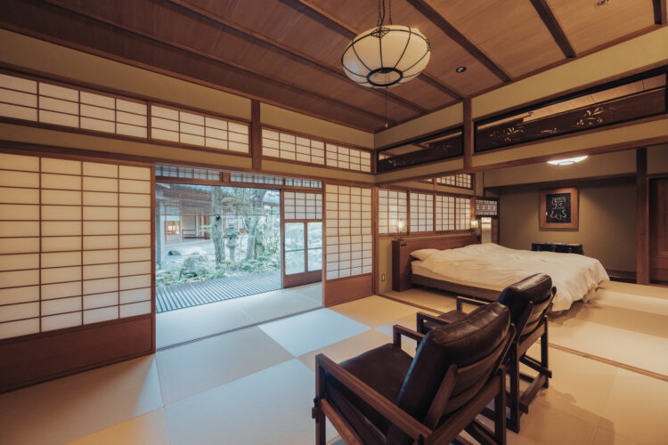 The inn’s 17 guest rooms range from suites to atmospheric Japanese-style rooms, each carefully designed. Seasonal cuisine prepared with locally sourced ingredients complements a stay shaped by centuries of history.