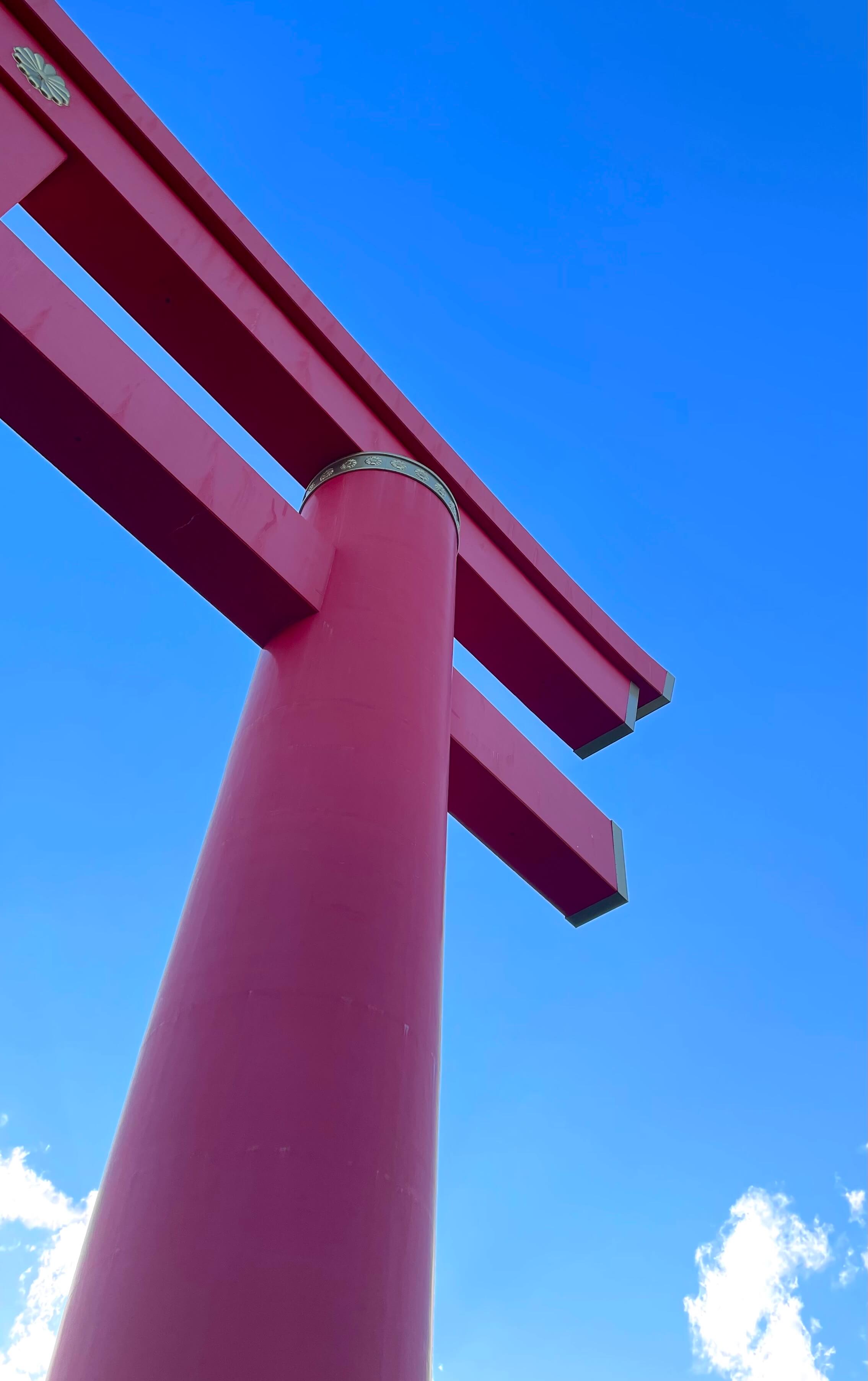 Among the numerous sacred sites on Awaji Island is Onokorojima Shrine, dedicated to Izanagi and Izanami, the deities who brought the Japanese archipelago into existence. Recognized by its striking 21.7-meter-tall cinnabar-red torii gate, the shrine sits atop a small hillock that is, according to one theory, the mythical Onokoro Island itself.