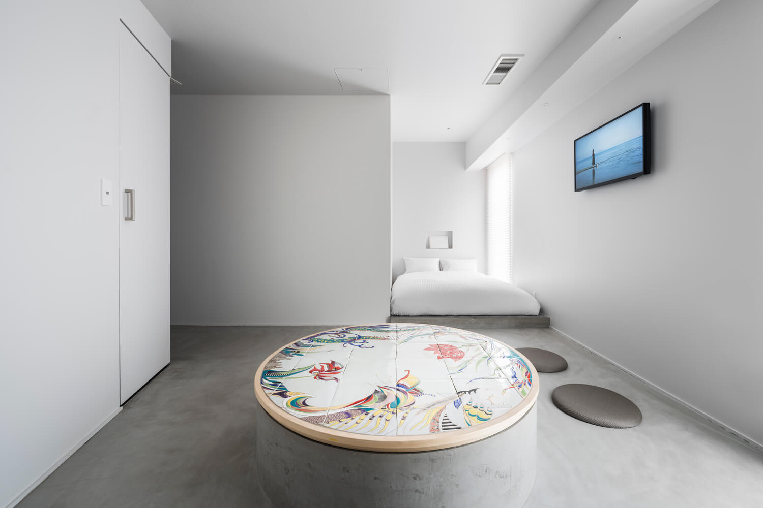 Its 31 rooms highlight the projects of various talented emerging artists. Each room reflects the practice of the artist in question from floor to ceiling, including furniture. The most difficult part of any guest’s stay is undoubtedly choosing the room. The Aiko Yuno 1993 room, for example, reproduces the interior of an old-fashioned love hotel. In contrast, the 2019/3019 room, with its porcelain panels and contemporary white ceramics, leans more towards minimalism.