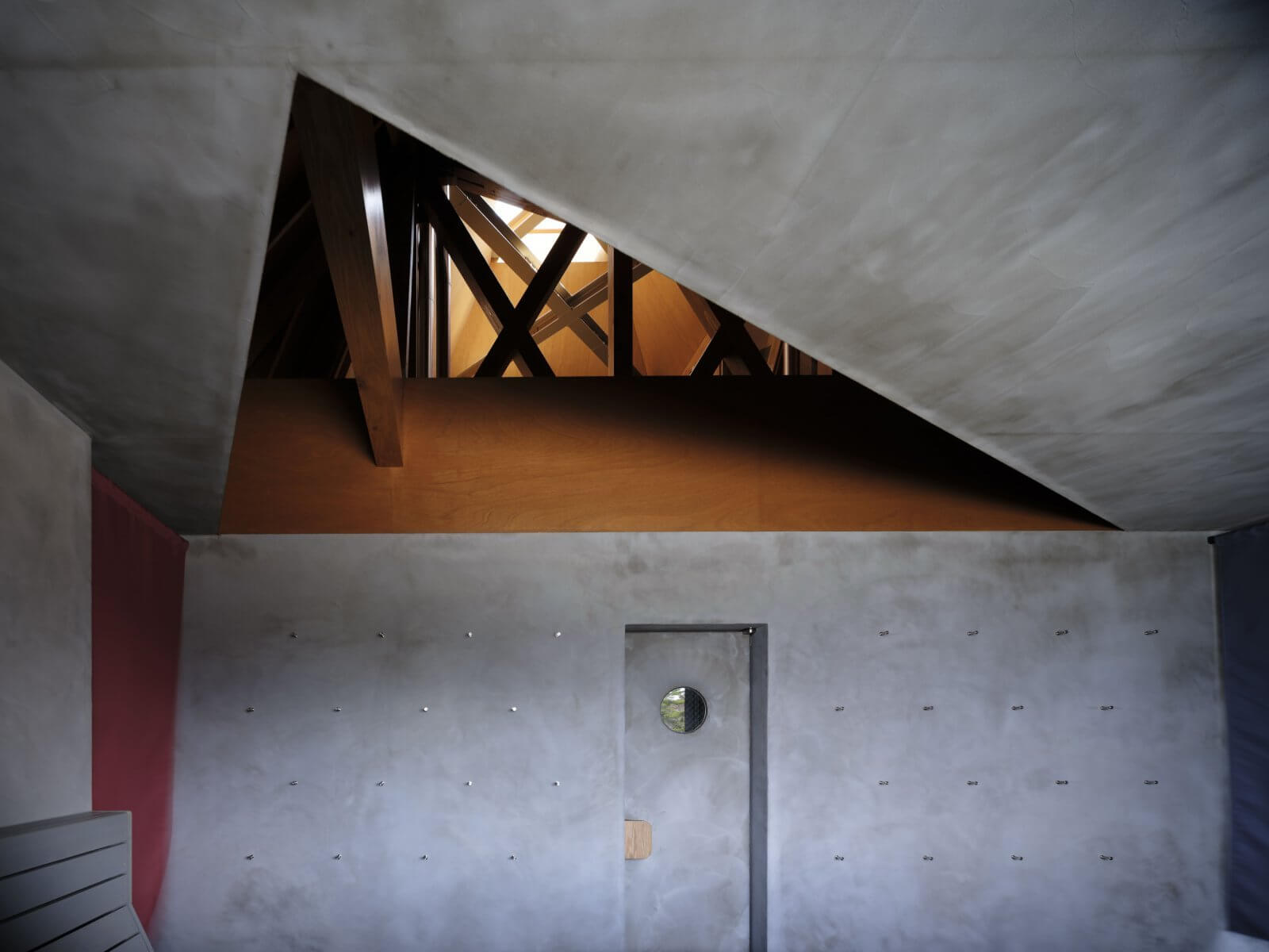 Structural supports are placed diagonally within the rectilinear floor plan to create a sense of rhythm in the space. The finishes alternate to represent Mount Fuji’s snow-capped peak. / Photo: YASHIRO PHOTO OFFICE