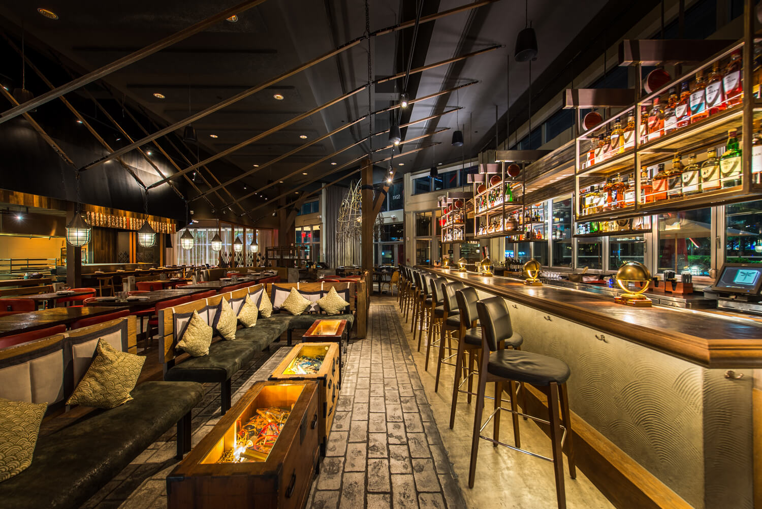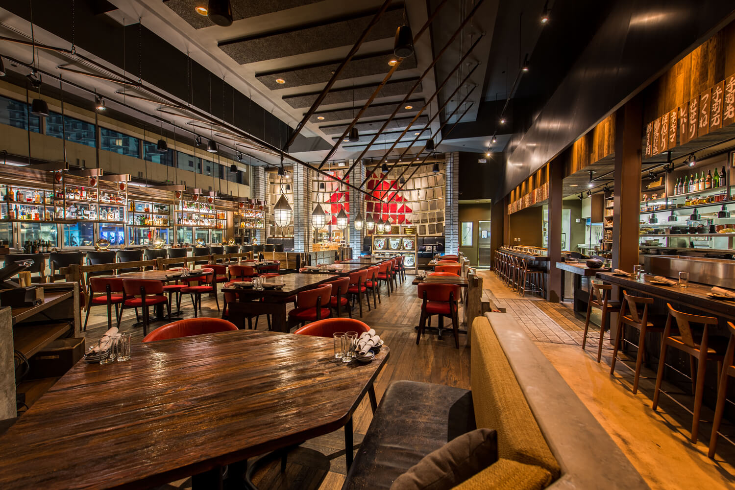 Modelled on an izakaya, a traditional bar and bistro, this location provides a range of dishes inspired by Japanese cuisine. Dragonfly Izakaya & Fish Market offers shrimp pancakes, octopus, calamari, and other specialities made from seafood, chicken, and sushi.