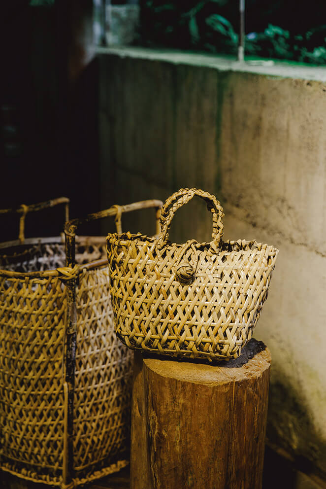 Rattan basket (4,000 TWD, by reservation), a contemporary reinterpretation of traditional hunting tools (pictured in the background, left).
