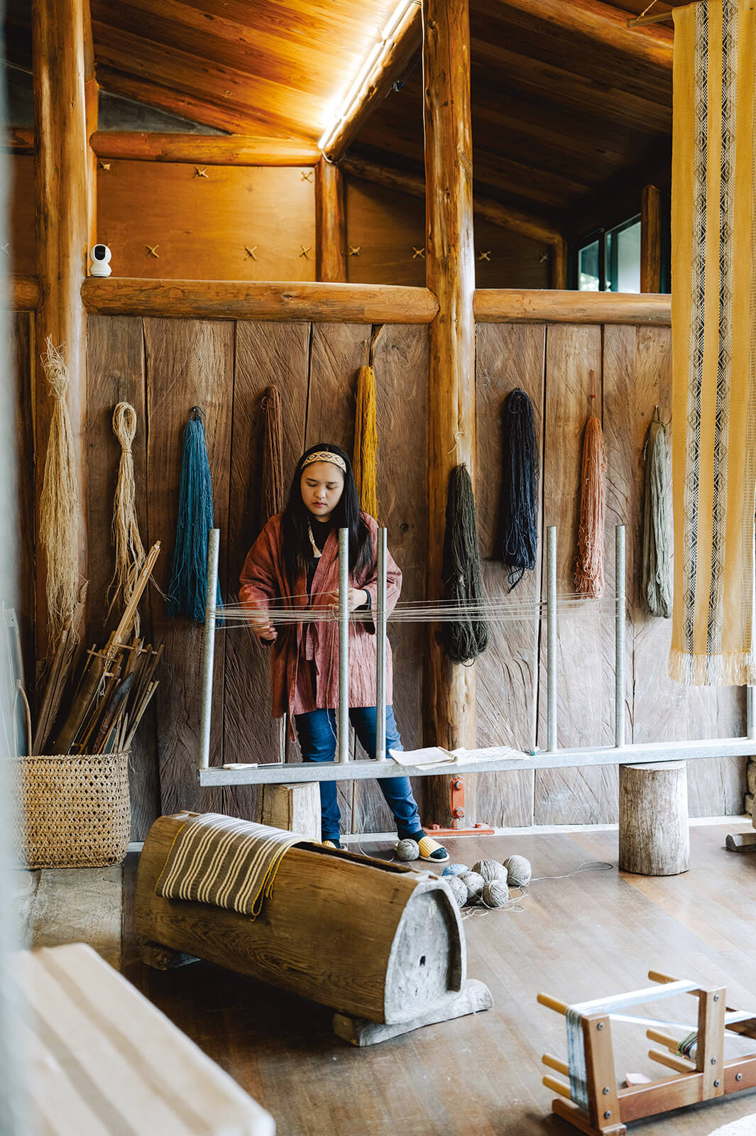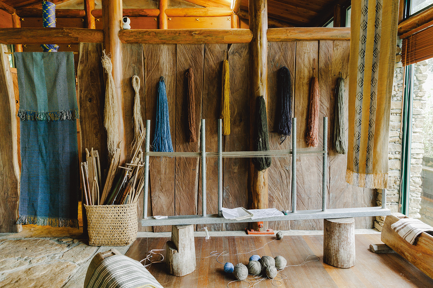 A dyeing and basketry workshop. The open layout invites a sense of harmony with nature. Visits are welcome.