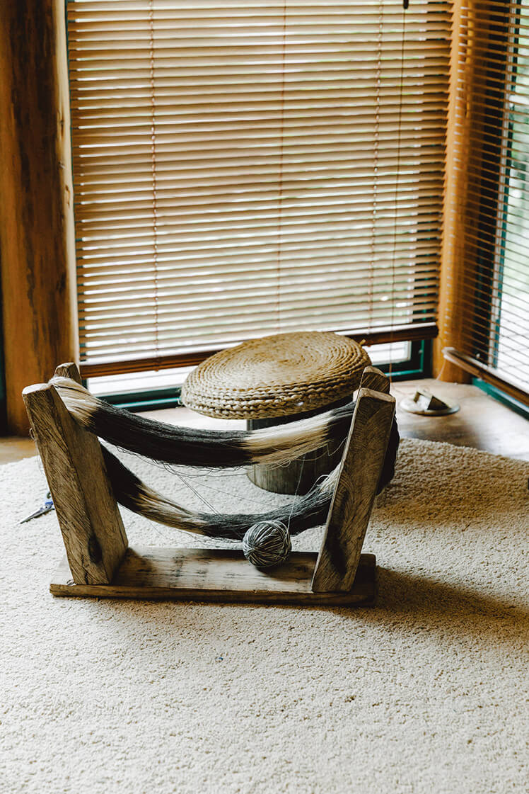 The space where Kwali’s 90-year-old grandmother weaves each morning. The stool used to flip and gather the threads has the presence of a sculptural object.