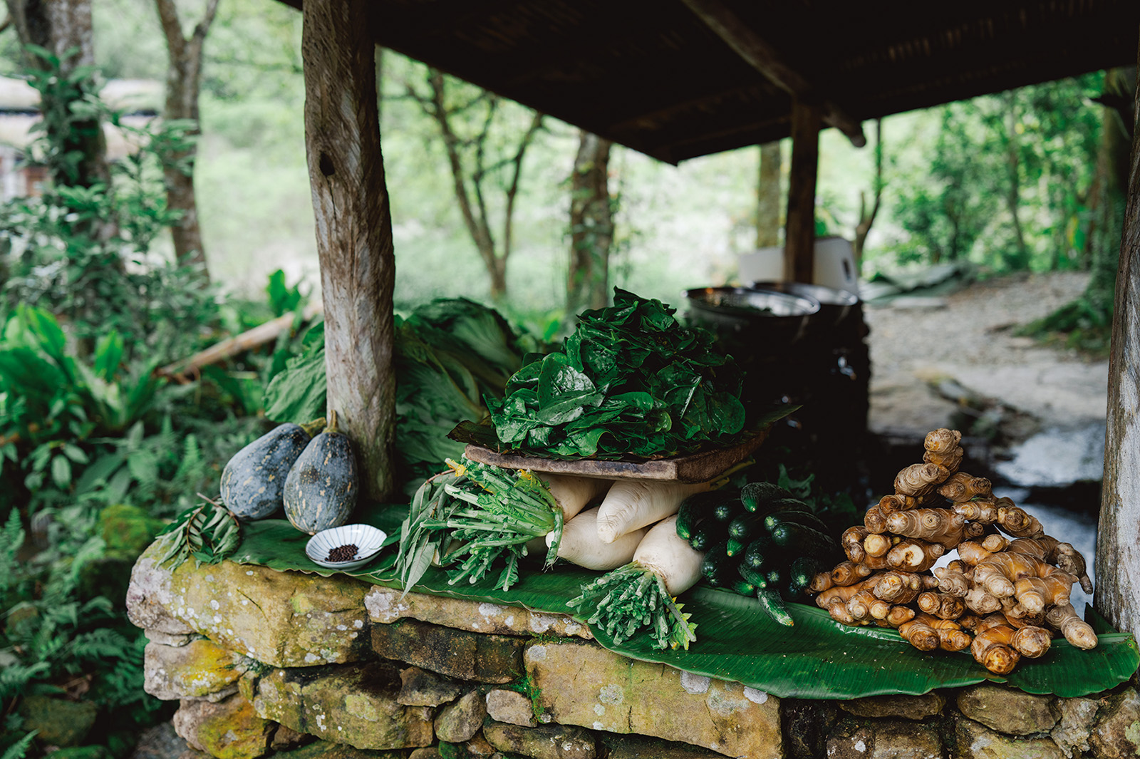 Freshly harvested seasonal vegetables are paired with local spices like maqaw and tana—a feast for the eyes. In line with Atayal tradition, the dishes are prepared without frying or oil.