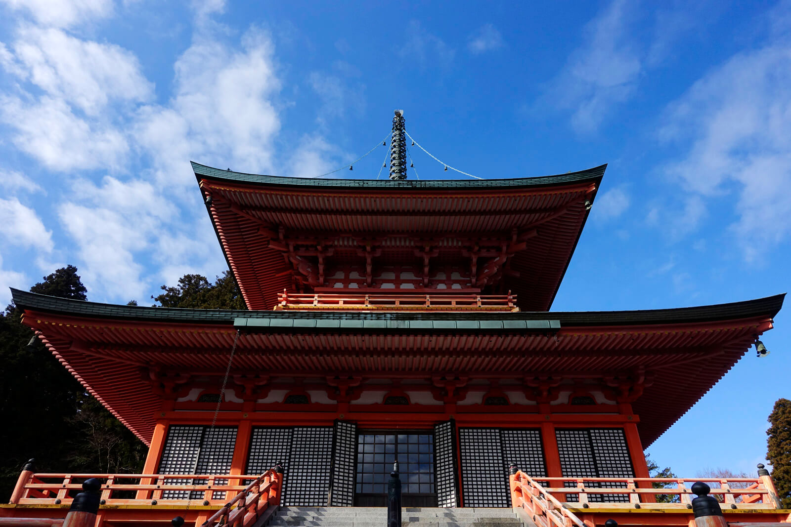 Upon reflection, the explanation for Mount Hiei’s hold on our imagination is certainly to be found in this meeting between water and mountain, of green, blue and all their infinite nuances, speckled here and there with touches of brown, asphalt grey or ochre, pointing up the roof of a school, a road or a public garden. Once you have scaled the 500 metres in elevation separating Sakamoto from Mount Hiei—848 metres at its summit—it is the red-orange torii, the traditional gates guarding the entrances to Shinto shrines, that burst into view. While some may insist on taking the traditional path of mossy steps to reach the summit, a funicular covers this same distance for less athletic travelers. At 2,025 metres, it is said to be the longest cable car line in Japan. Here, we are in the realm of Enryaku-ji, and the term ‘realm’ is not chosen lightly, given the site’s considerable influence on Japanese history. The temple’s significance was so great that it was even razed to the ground in 1571 by the very powerful warlord Nobunaga Oda, who thus hoped to contain the ascendancy of the warrior monks. A martial tradition that might seem surprising, given how we tend to perceive monks. It is explained by the story behind the founding of the Enyraku-ji temple, as it was built to protect the emperor and his new capital, Heian-kyo (present-day Kyoto), from evil spirits.