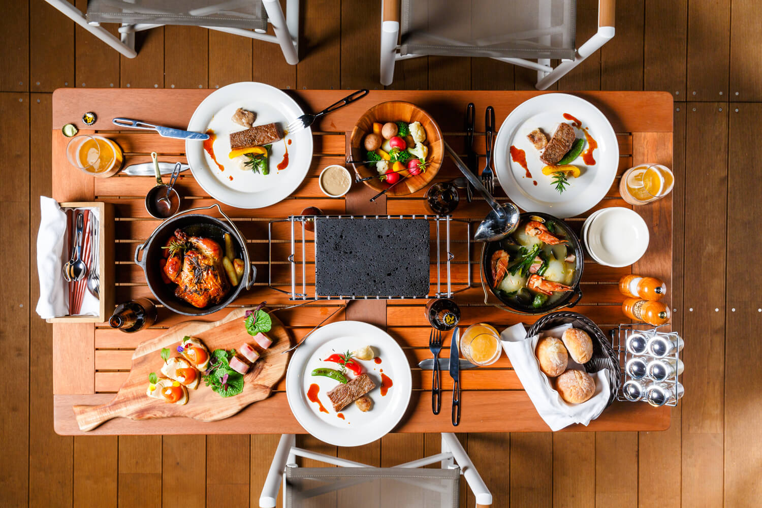 As for the meals, gourmet breakfasts and dinners are served daily, cooked or raw, to preserve, in spite of all this refinement, the simple pleasure of a barbecue at dusk with friends and family.
