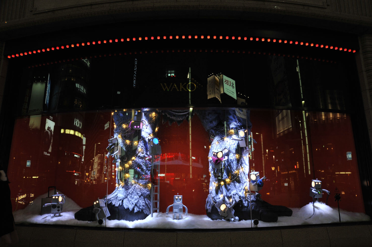 Like the big Parisian department stores, those in this chic Tokyo district create ‘artistic windows’ every year in the runup to Christmas.