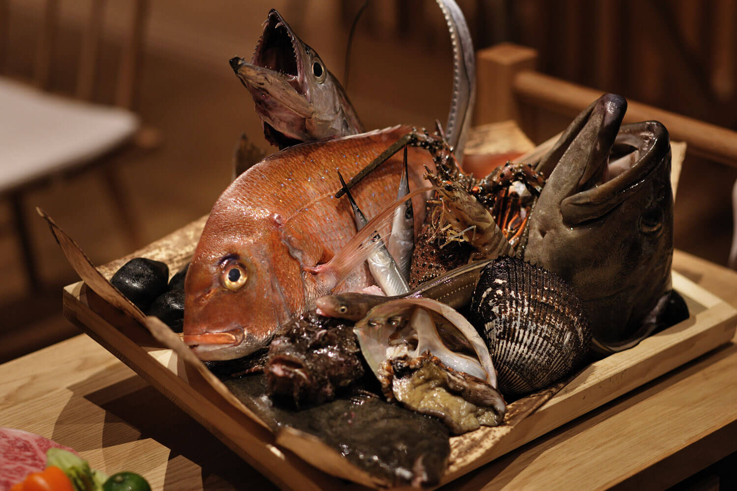 The freshly-caught seafood lifted from the Seto Inland Sea can be cooked to order by the chefs in any way that the guests want.