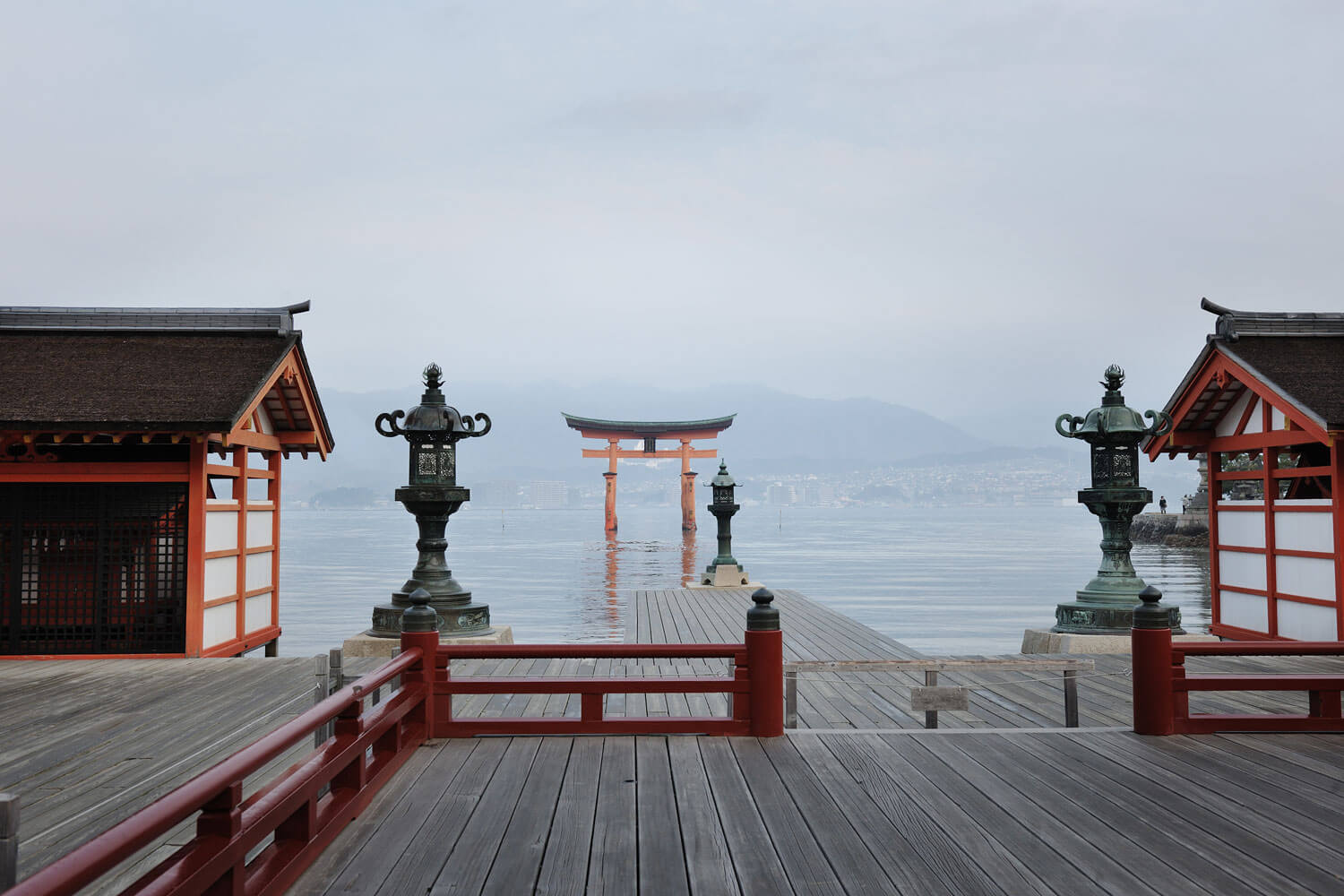 The landing of a tender onto Miyajima Island, where Itsukushima Shrine is located.