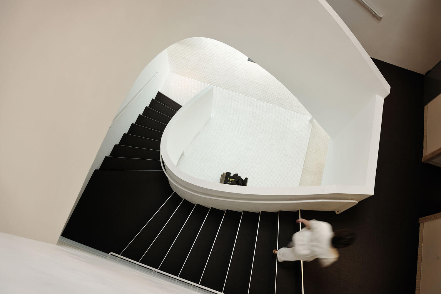 The plaster-coated spiral stairway offers not only a modern appearance, but also a traditional ‘Japanese-ness’ as represented by the plastered surfaces.