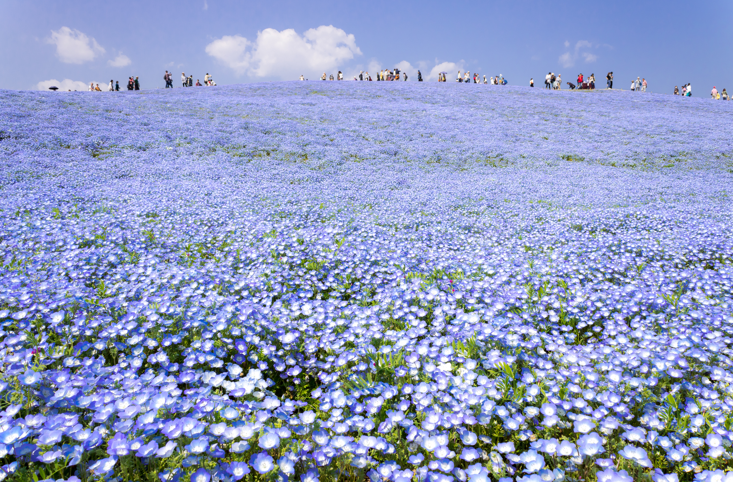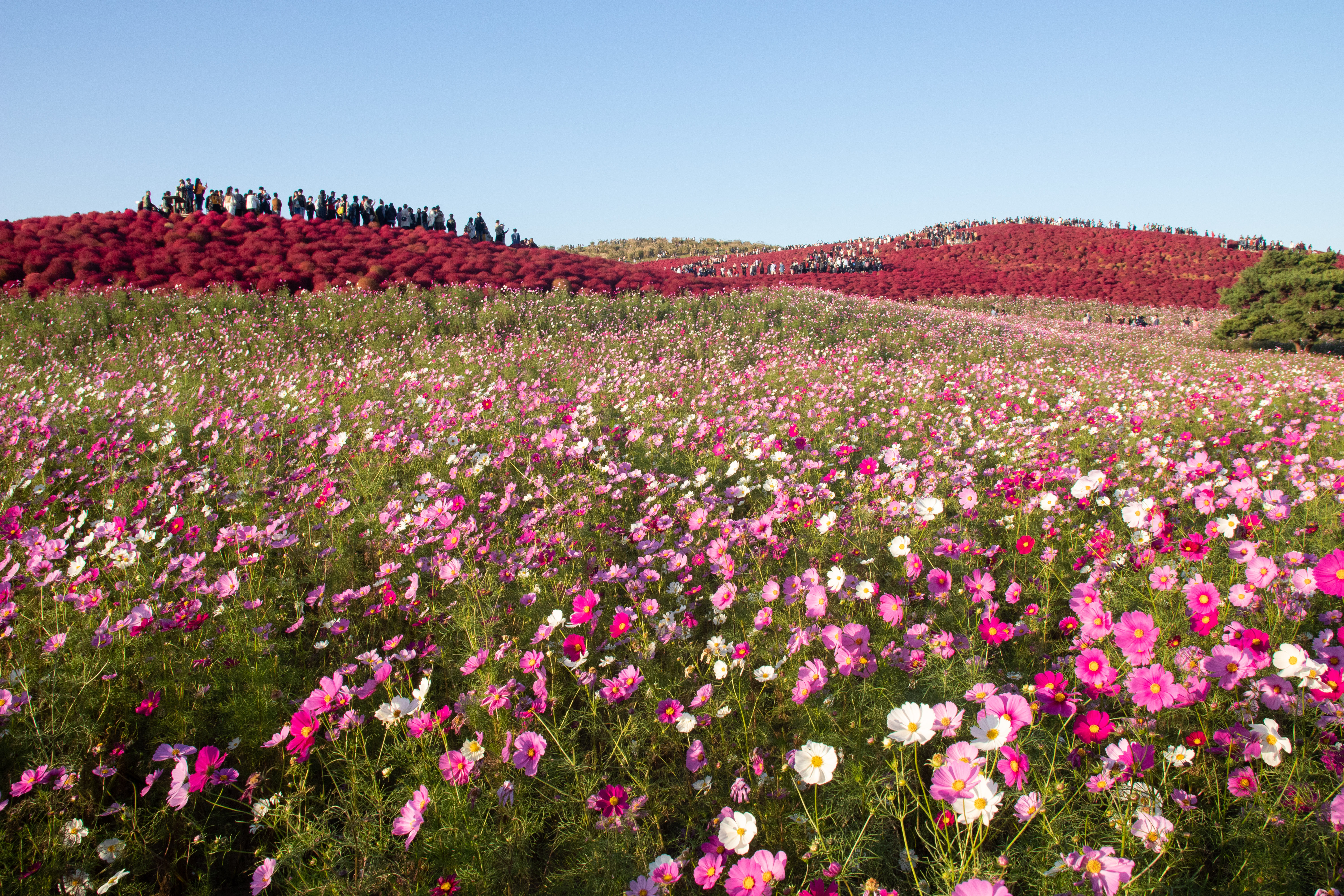Throughout the year, thousands of flowers embellish Hitachi Seaside Park. Just two hours from Tokyo, this natural haven attracts numerous visitors needing a breath of fresh air and to take a break among the greenery.