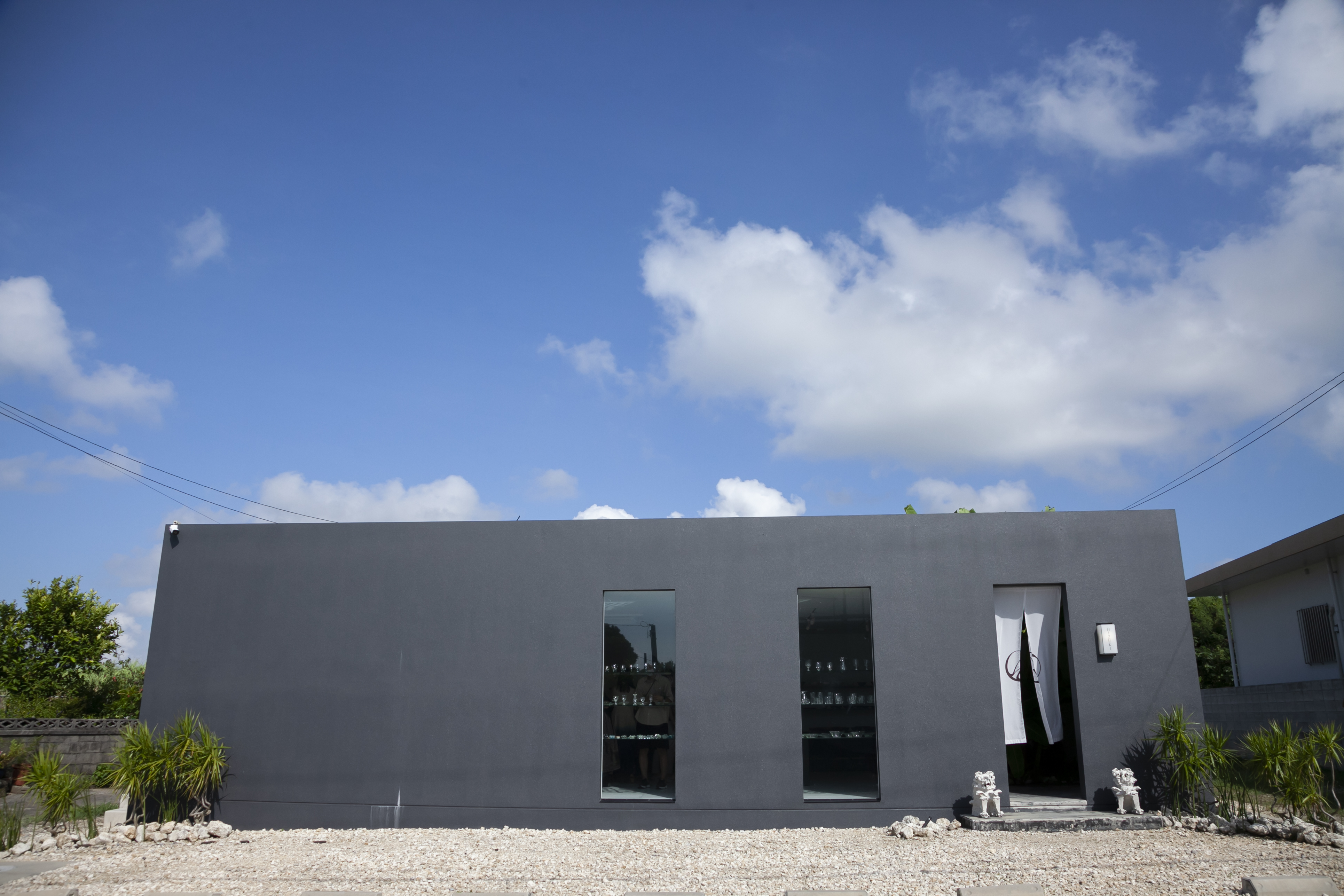 The shop is located in a corner of a residential area in Yomitan. It features a modern atmosphere.
