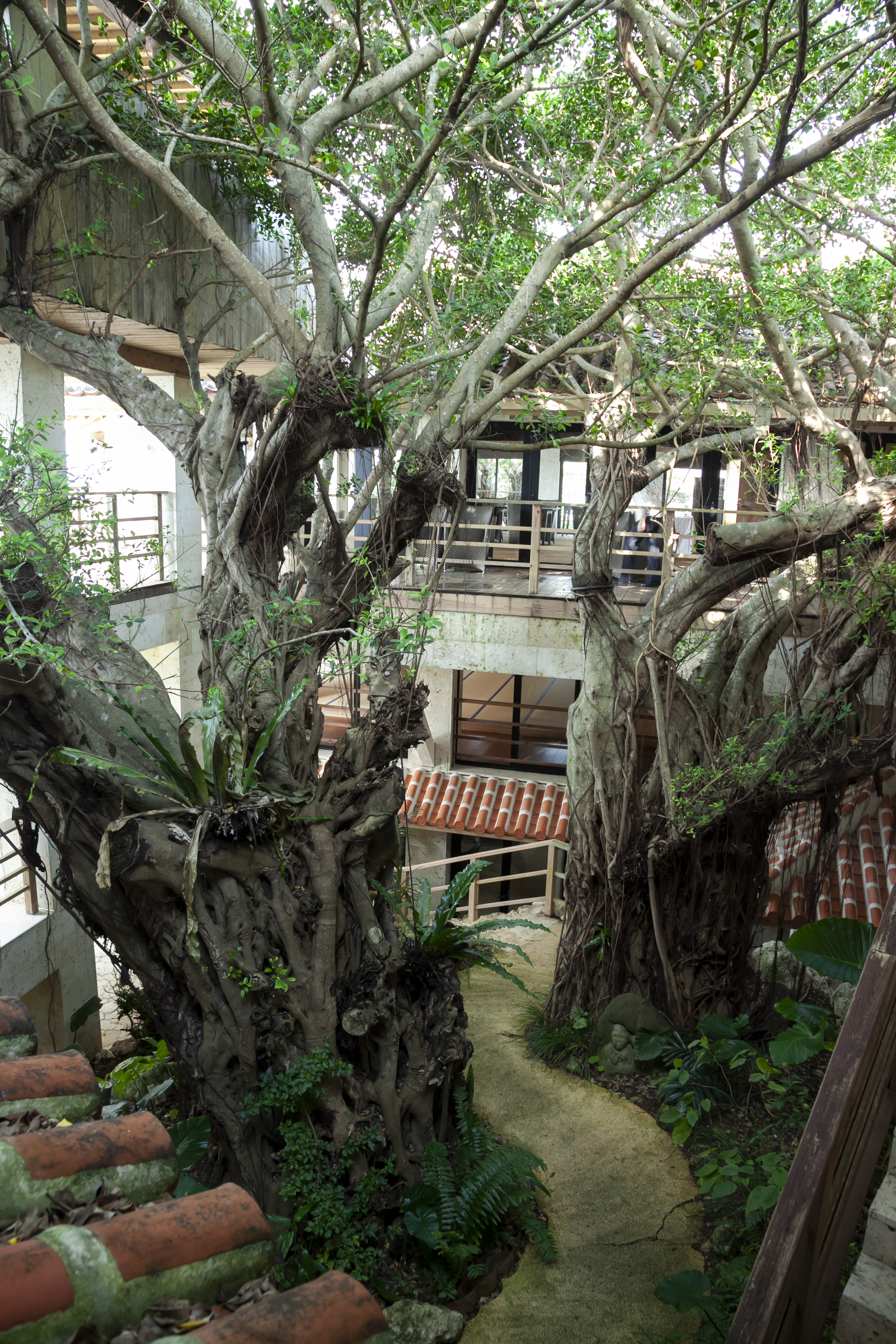 A so-called "small forest" in the courtyard with huge banyan trees.