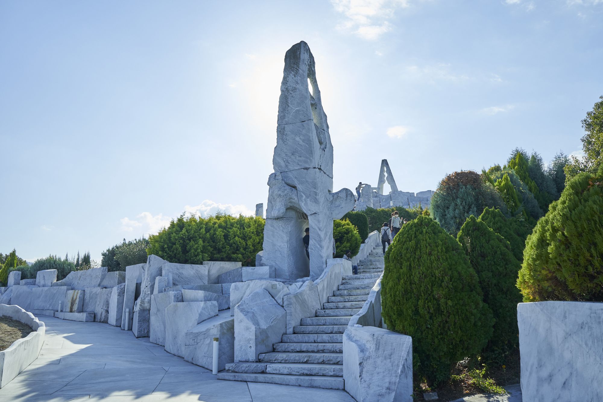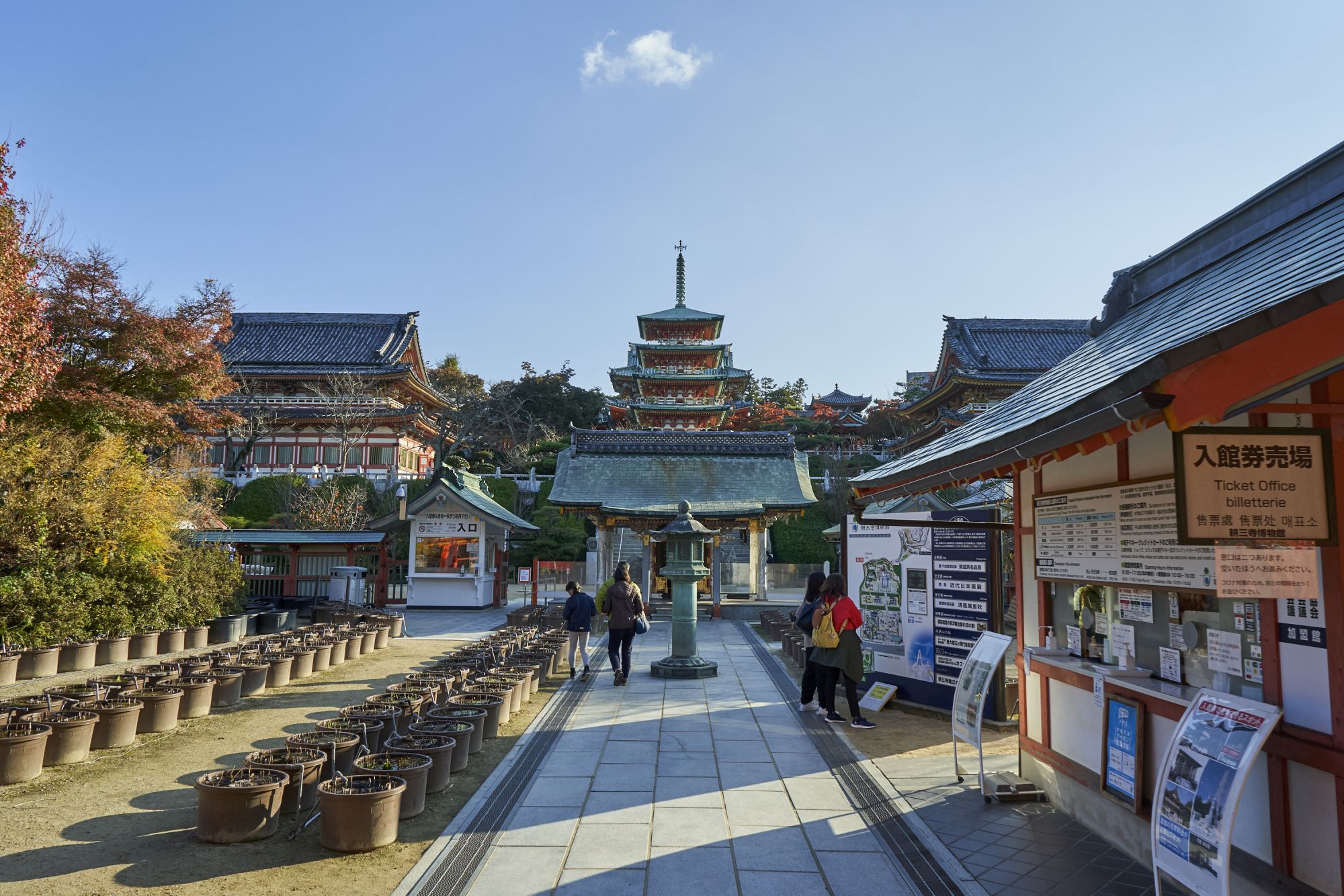 On this island with 11,000 inhabitants, an unusual Buddhist temple complex, Kosanji, stands in the town of Setoda. With a surface area of over 50,000 m2, it was founded in 1936 on the demand of Kozo Kosanji, a rich industrialist from Osaka who wanted to pay homage to his mother who had passed away not long before. Several temples, including a three-storey pagoda, and a museum housing the businessman’s art collection, make up Kosanji. Visitors can also enter the Cave of a Thousand Buddhas, an underground path built from lava stone from Mount Fuji where they can see, as well as a mini waterfall and paintings representing Hell, one thousand statues of Buddha. Lastly, the complex contains the Hill of Hope, a garden strewn with statues and monoliths made from Carrara marble that stretches over 5000 m2, designed by artist Itto Kuetani, who wanted to represent family connections and peace.