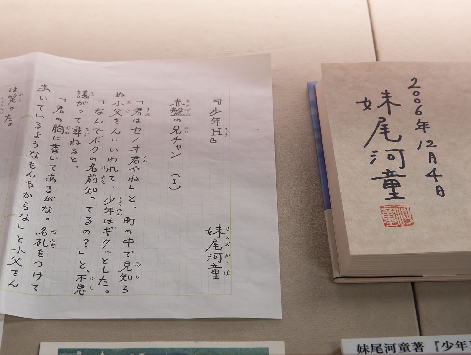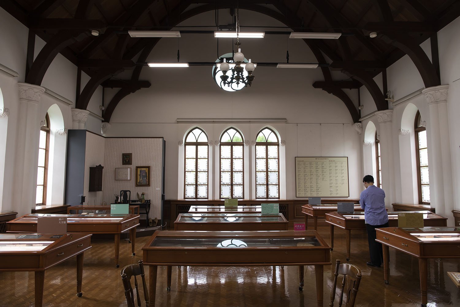 Opened in 2006, the Kobe Literature Museum exhibits literature-related materials associated with Kobe. It is housed in the former Kansai Gakuin Chapel built in 1904, a nationally registered tangible cultural property. ‘The calligraphy of Kawahei Imio is lovely,’ says Mr. Fukai.