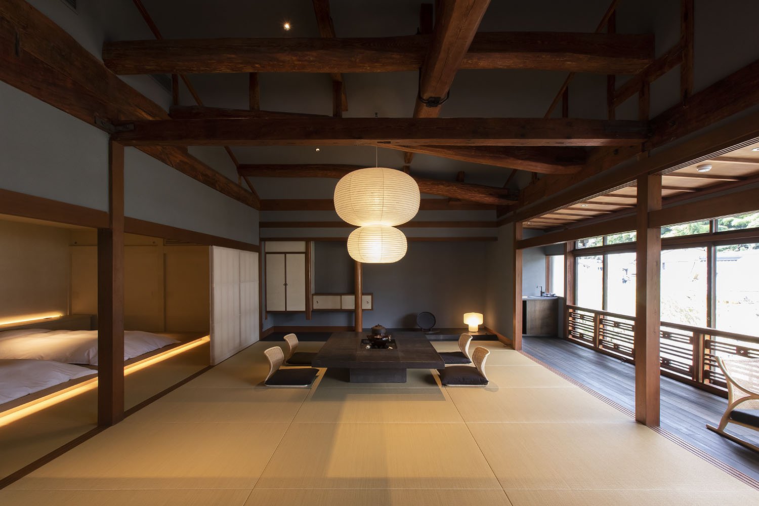The renovation of this historic inn was undertaken by SUPPOSE DESIGN OFFICE. While preserving the framework, they highlighted the history and charm of the building, reminiscent of the traditions of Kinosaki.