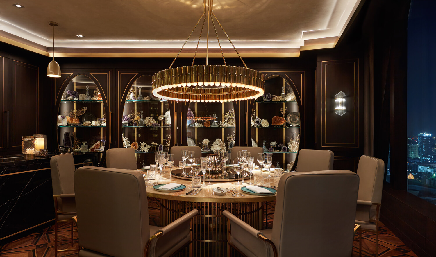 The peak of comfort can be found on the 35th floor with The Cocktail Bar, The Mezzanine, and The Whisky Room. For atmosphere, The Cocktail Bar is instantly seductive, with private cabins, each enclosed with gilded, wrought-iron partitions. For taste and exclusivity, however, head to The Whisky Bar for its unique selection, served to the highest of standards.