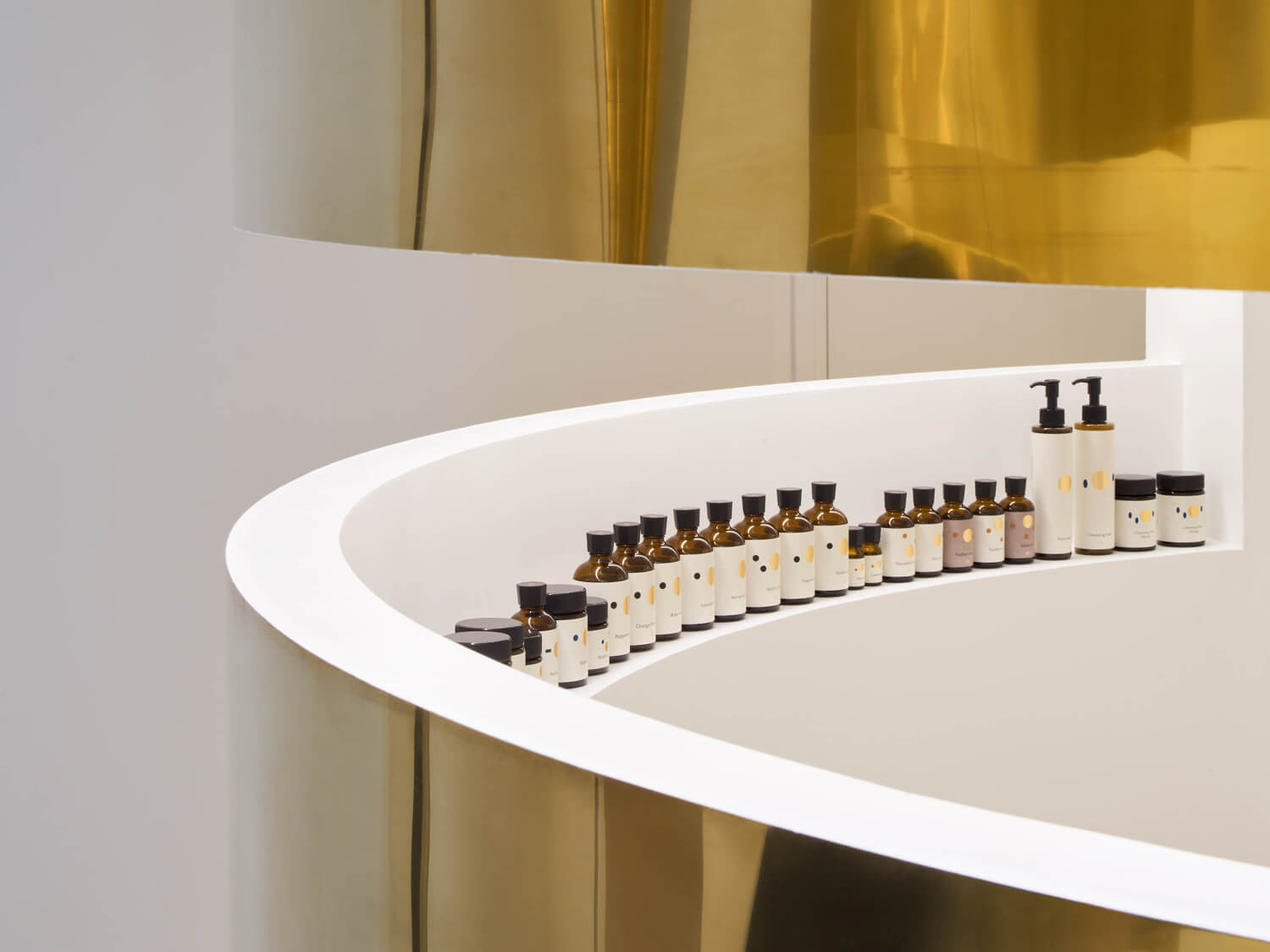 To express the brand’s philosophy through the architecture of the spa, Lenor Japan turned to Archiee, a French firm created by Tokyoite Yusuke Kinoshita and his associate Daisuke Sekine, who hails from Kanagawa. This is not the first time that the studio has looked to Japan for inspiration: Archiee was also responsible for the interior design of the Japanese boutique Bukiya (Rue Sainte-Anne) that sells objects imported from Japan, and the concept store Wa, a shop and an exhibition space dedicated to Japanese culture located in Paris’ 1st arrondissement.