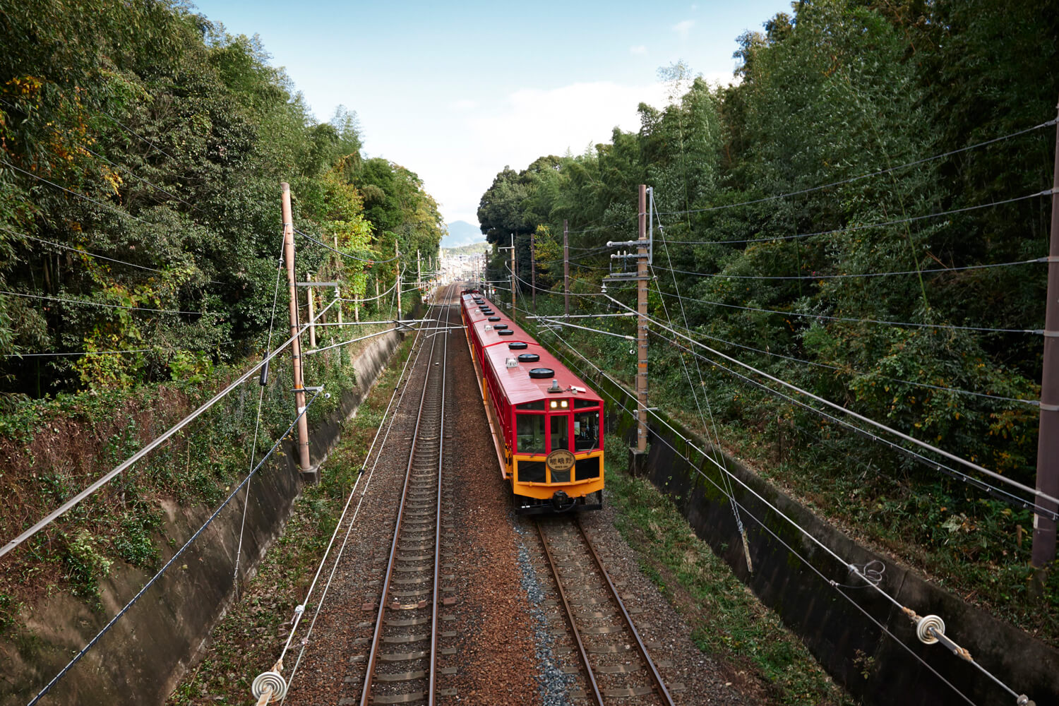 The panoramic Sagano railway near Kyoto runs from Arashiyama and its famous bamboo forests to Kameoka along the Hozugawa river. The line is only seven kilometres long, the perfect duration for 25 minutes of gazing out of the window. The train runs at a moderate speed, allowing passengers to get their cameras out and snap away during the journey.