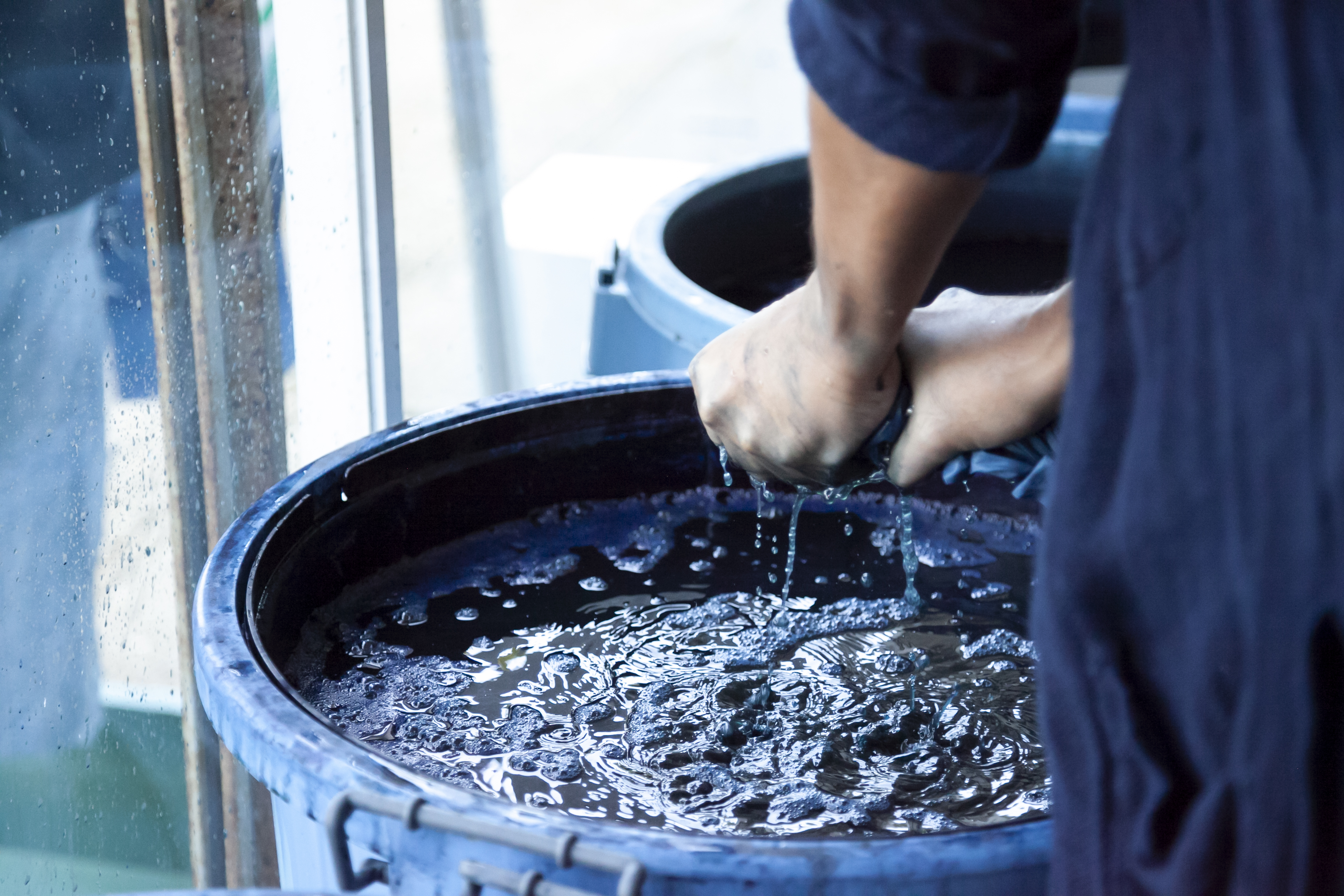 Founder Yoshinari Kakazu cultivates indigo by himself and also performs the dyeing process.