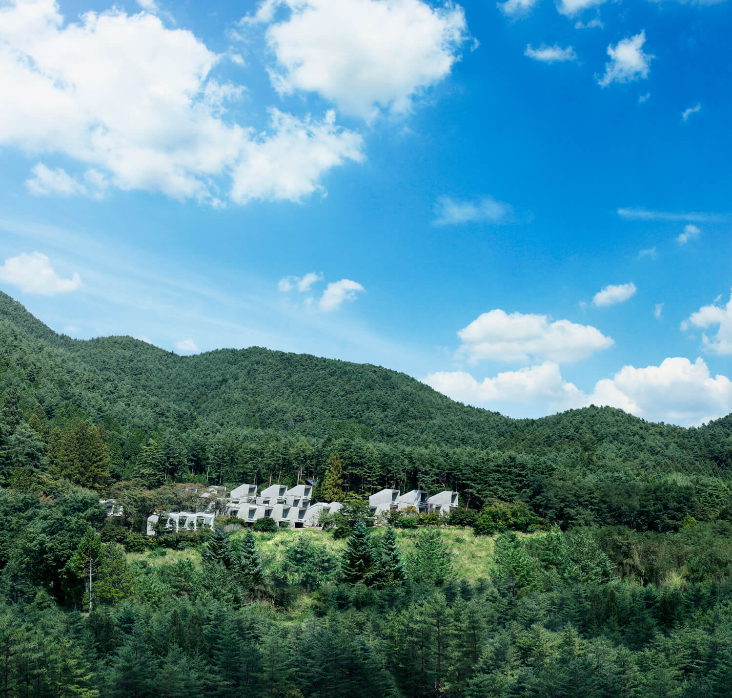 This glamping site consists of forty cabins, small white cubes that look like contemporary works of art, arranged on a hill, amongst hundreds of trees. ‘The rooms have been designed to provide all the comforts of a hotel, with air conditioning and a bathroom’, explains Yoshiharu Hoshino, director of this extraordinary establishment. ‘But we also made sure that a third of the room was in the open air so that guests can enjoy the surrounding nature and perhaps a campfire, as though they were really camping.’