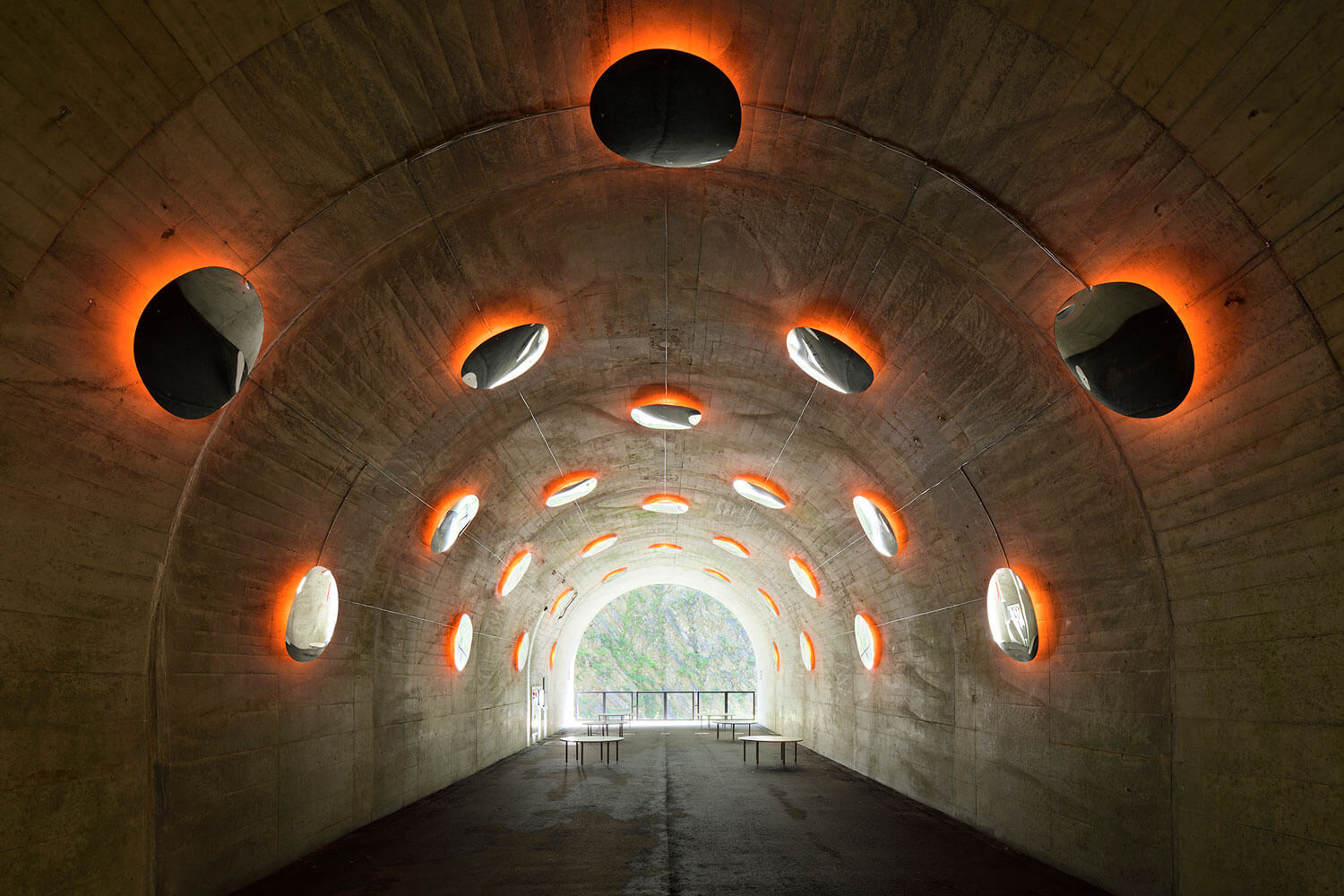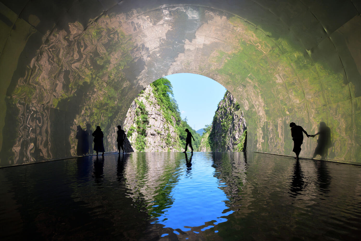 The architects restored a 750-metre-long Kiyotsu Gorge Tunnel, interspersed with art installations for the occasion.