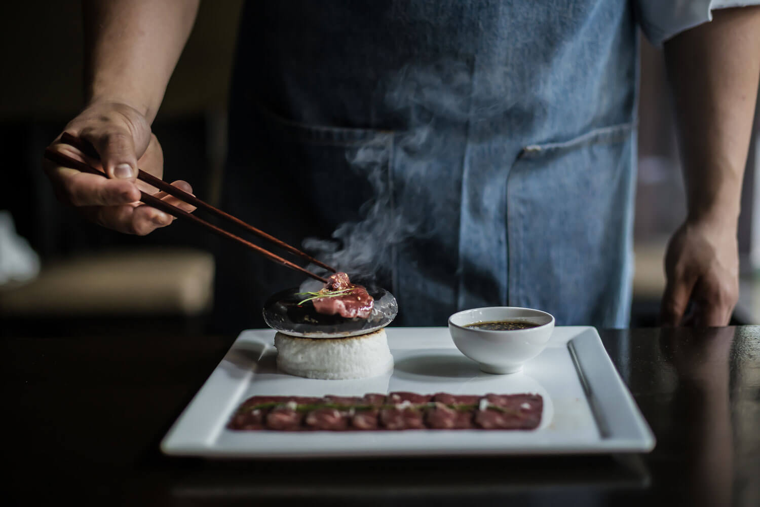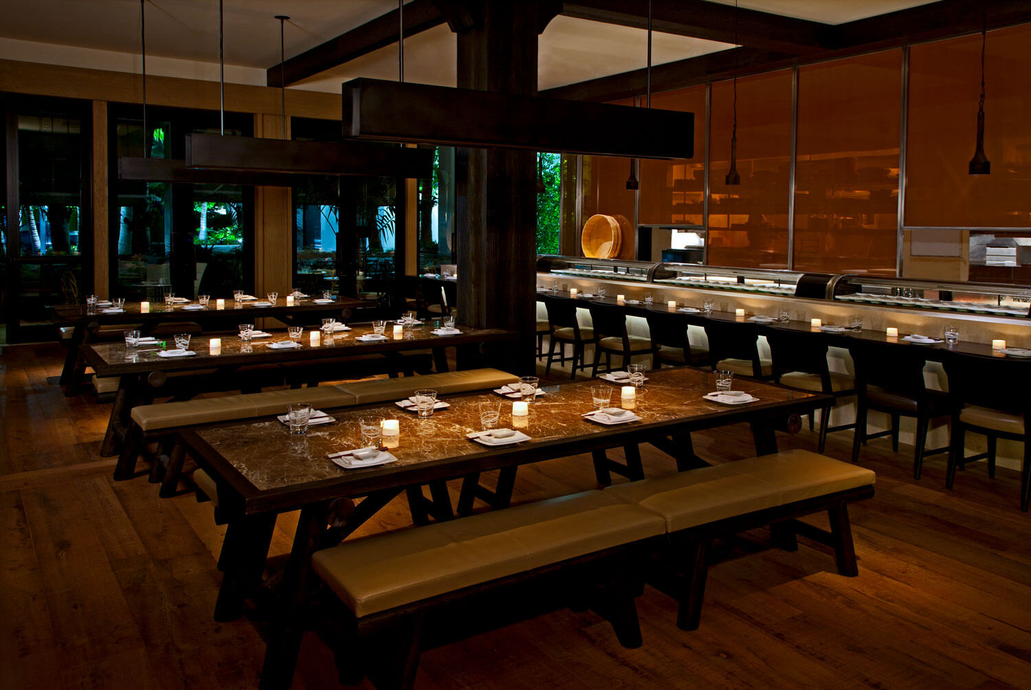 ‘I have a real respect for Japanese traditions, but I think it’s also important to add my own variations to appeal to a wider range of palates’, the chef explains. His menu takes inspiration from his colleagues, mentors and the sophisticated clientele in Bal Harbour, as well as its sunny climate and products from the region. Thus, diners can enjoy grilled avocado, oysters with Japanese vinegar and crispy chicken gyozas.