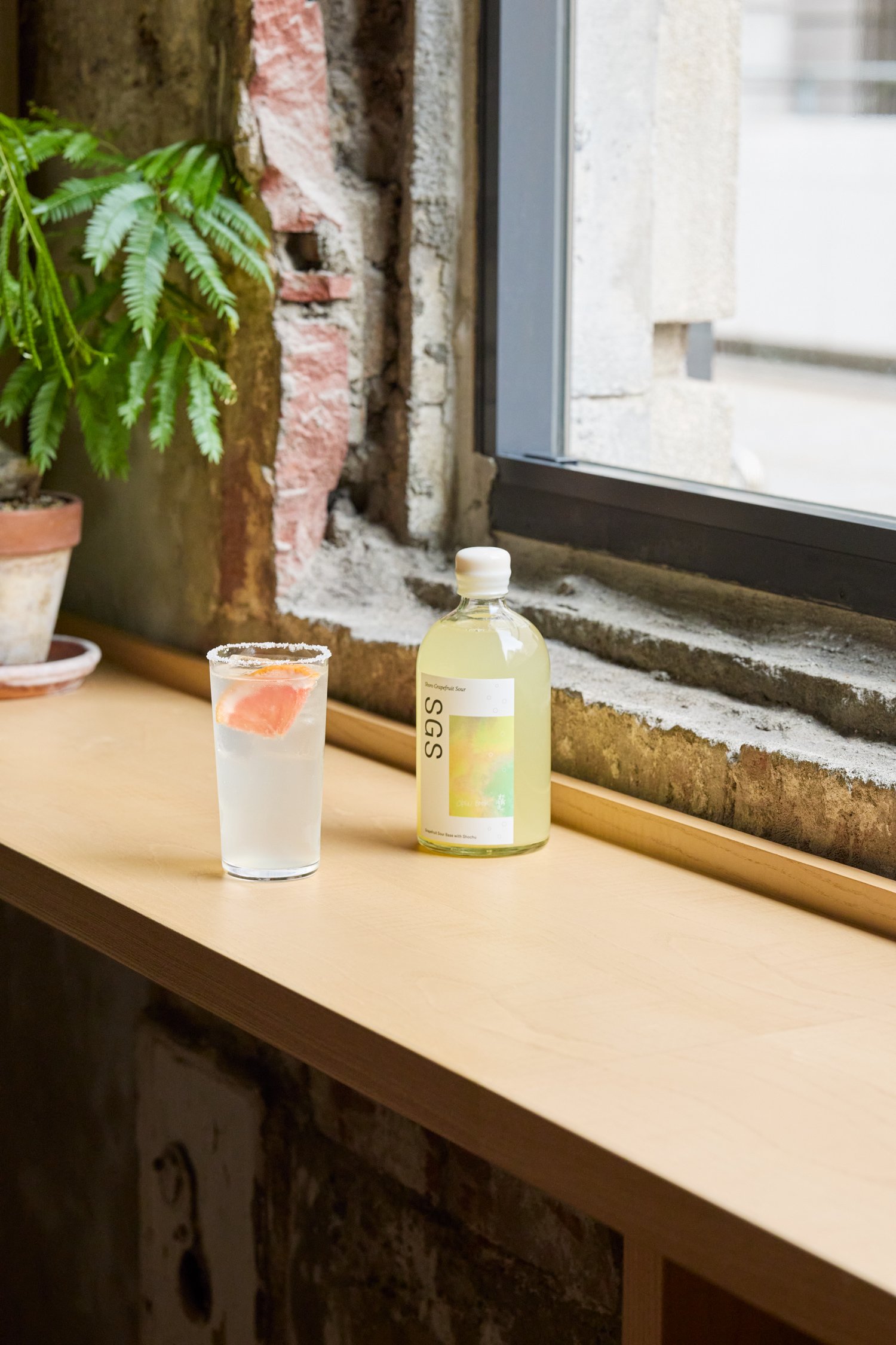 There’s also a standing bar area with a view of the street outside. Pictured is a ‘Salty Dog’ made with ‘SGS (Shoro Grapefruit Sour),’ a grapefruit liqueur jointly developed by Miyazaki’s Shoro Distillery and lemon sour specialty bar Open Book.